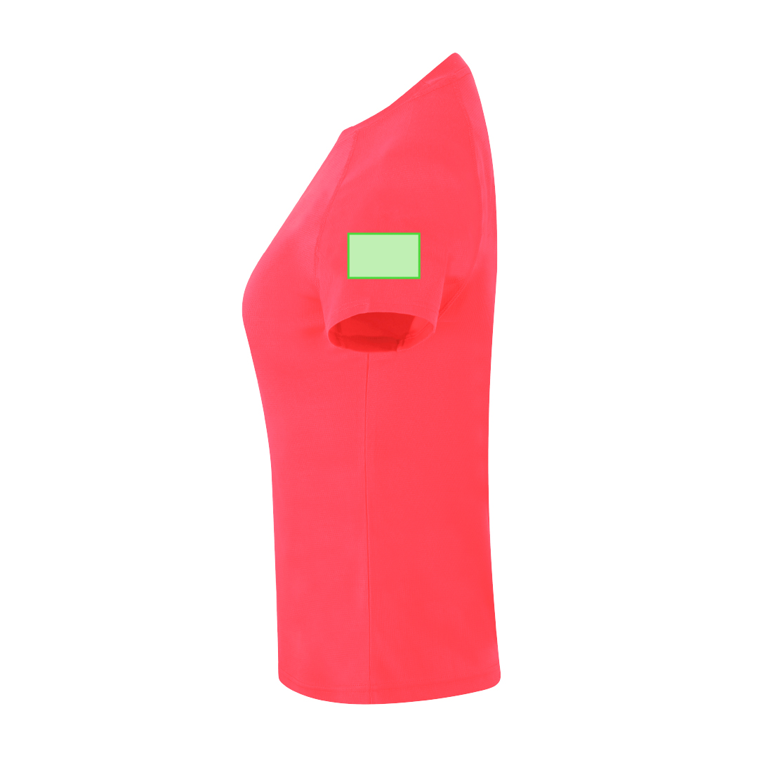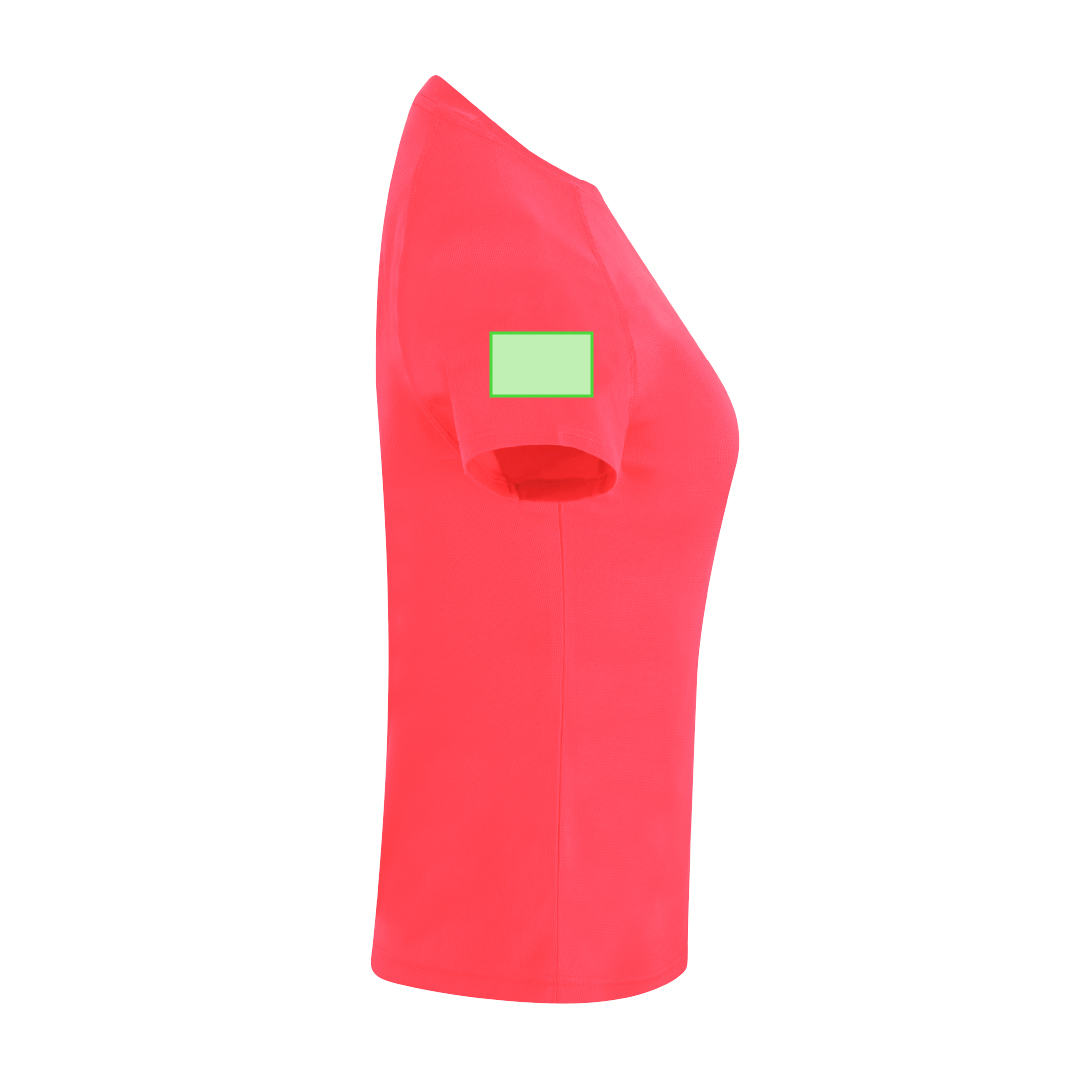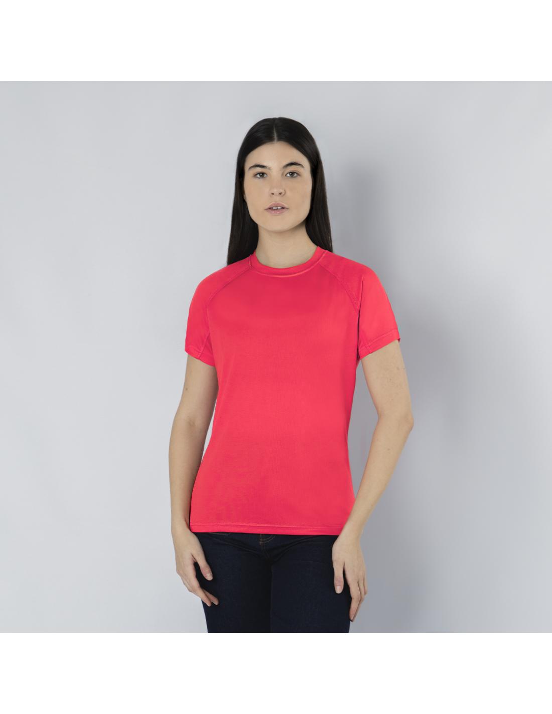 Camiseta técnica de manga corta ranglán, con fit femenino, confeccionada en tejido 100% poliéster waffle interlock , incorpora tecnología Cool Dry, que favorece la transpiración y el secado rápido. Diseño con mangas ranglán y costuras overlock en sisa y mangas. Cuello y cubrecosturas a tono.