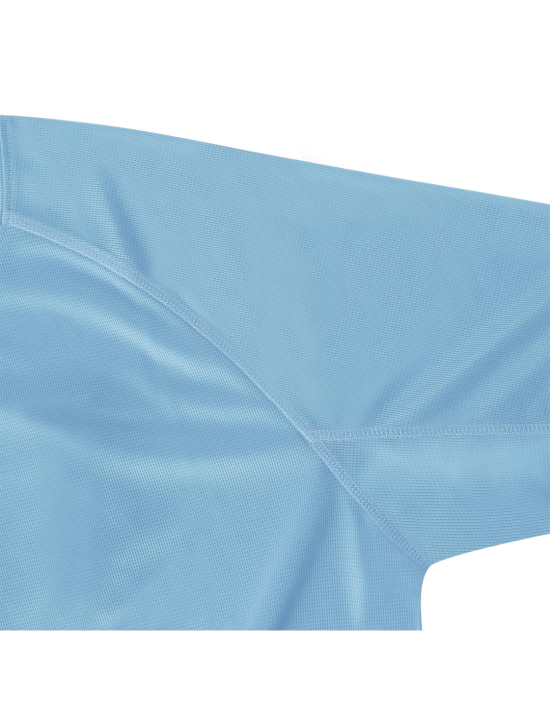 Camiseta técnica infantil de manga corta ranglán, confeccionada en tejido 100% poliéster waffle interlock, incorpora tecnología Cool Dry, que favorece la transpiración y el secado rápido. Diseño con mangas ranglán y costuras overlock en sisa y mangas. Cuello y cubrecosturas a tono.