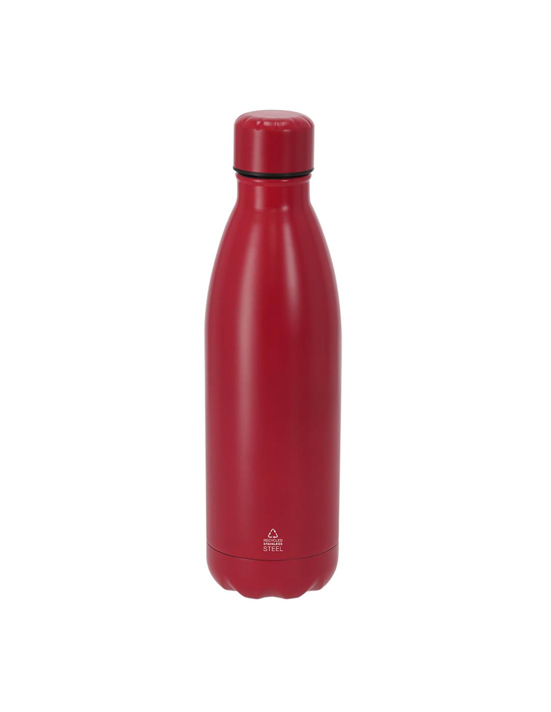 Bidón térmico de 500 ml de capacidad, fabricado en acero inox reciclado de doble pared. Su diseño combina cuerpo con tapón a rosca en color a juego con acabado mate. Libre de BPA. Incluye distintivo de acero inox reciclado.