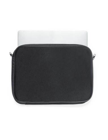 Funda para ordenador portátil, fabricada en resistente soft shell. En elegante color negro, con interior acolchado. Cierre de cremallera a juego con doble tirador. Para ordenador portátil o tablet de hasta 13 pulgadas.
