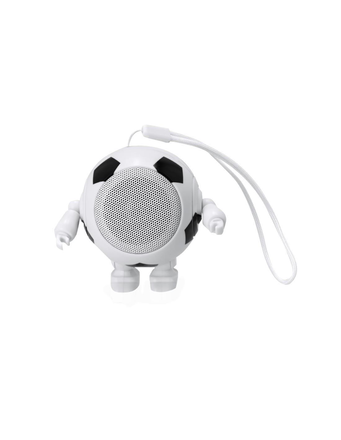 Altavoz con original diseño de balón de futbol bailarín fabricado en ABS. Con conexión Bluetooth® 5.3 y 3W de potencia, y batería de 500 mAh a través de cable USB-Tipo C incluido. Incluye práctica y divertida asa de transporte, para ir con la música a todas partes.