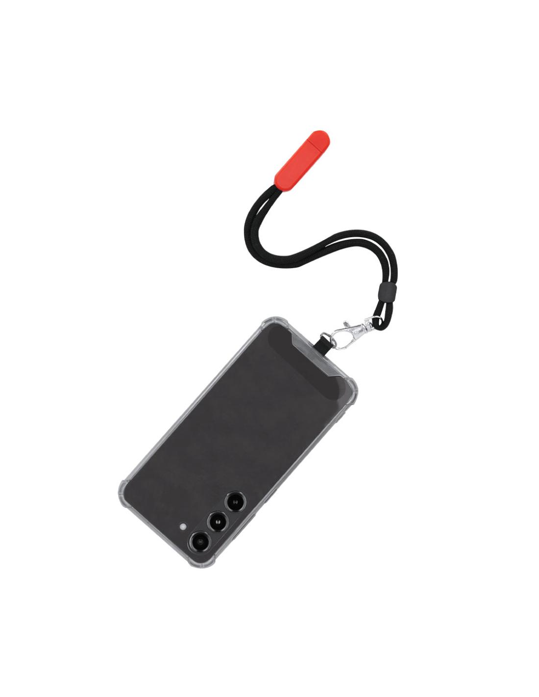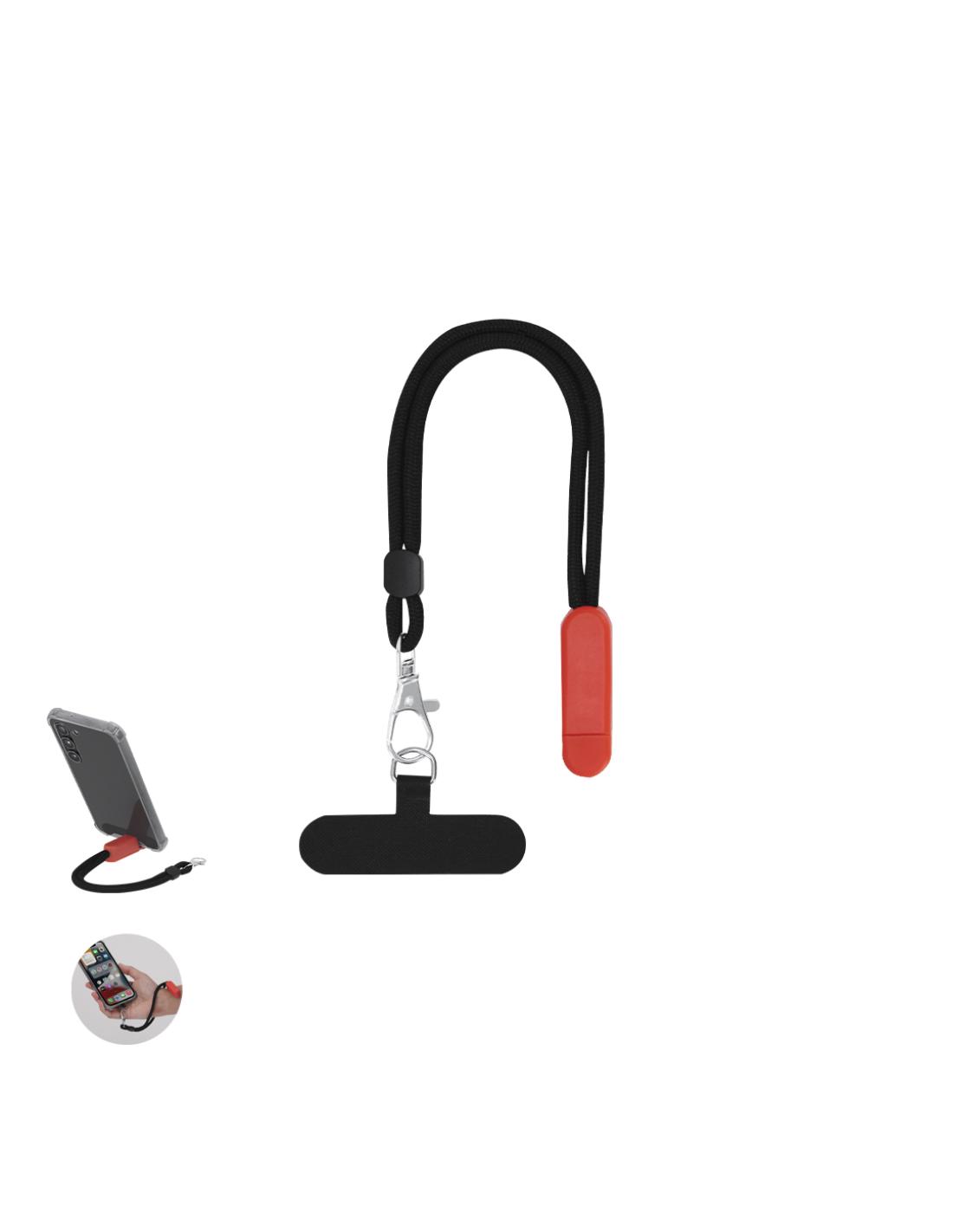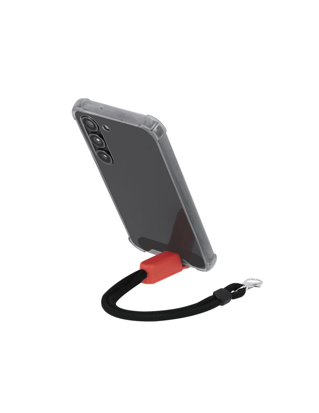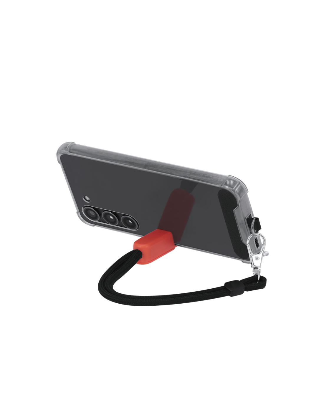 Original pulsera portamóvil en suave poliéster, adaptable a todo tipo de muñecas. Con accesorio de transporte para situar entre la funda y el smartphone unido mediante mosquetón metálico. Incluye soporte en ABS ideal para dejar tu dispositivo móvil.