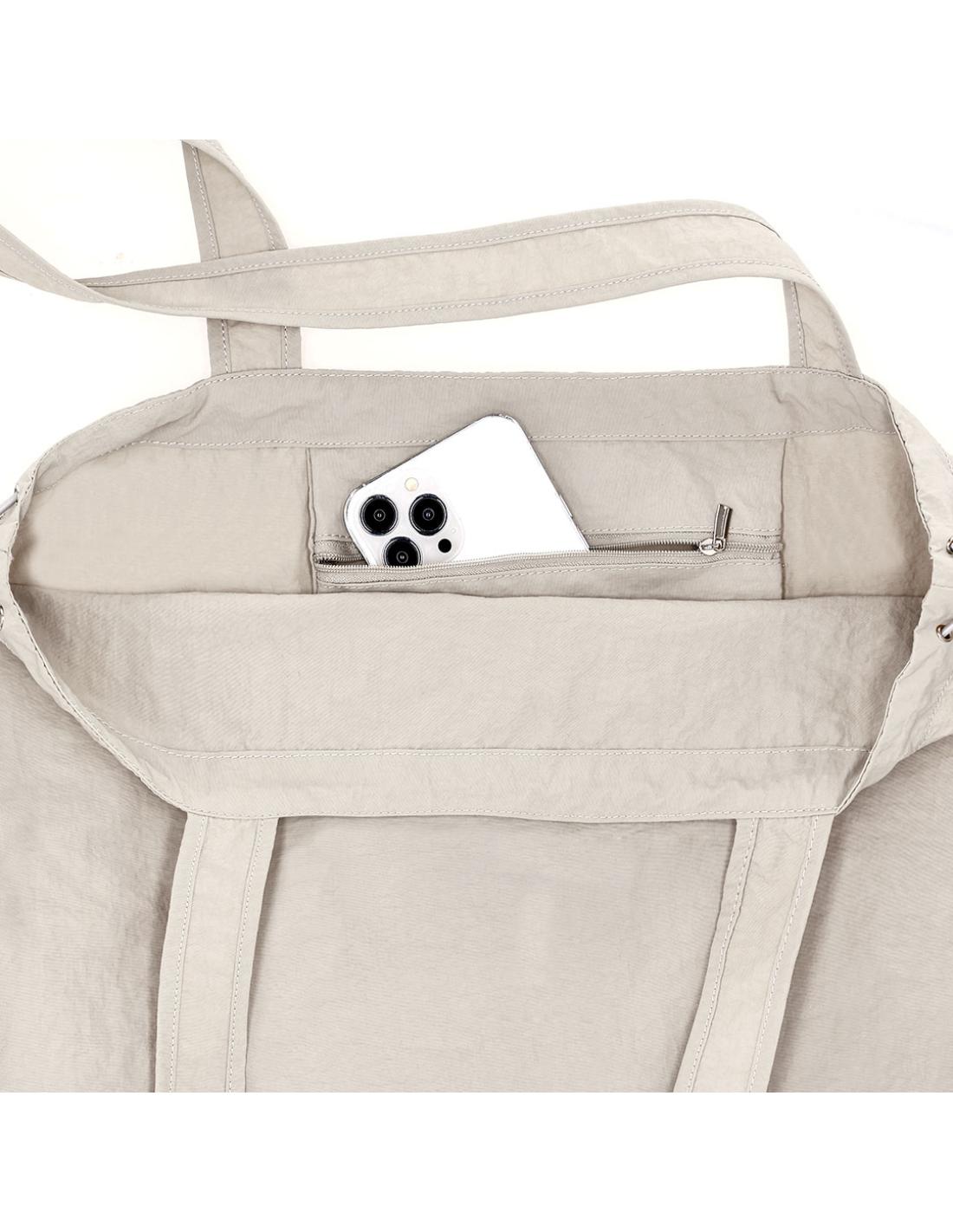 Bolsa confeccionada en suave y ligero Soft Nylon de 135g/m2. Con bolsillo interior y cierre con cordón ajustable. Asas largas de 70 x 3.5 cm. Incluye una cinta elástica para fácil plegado.