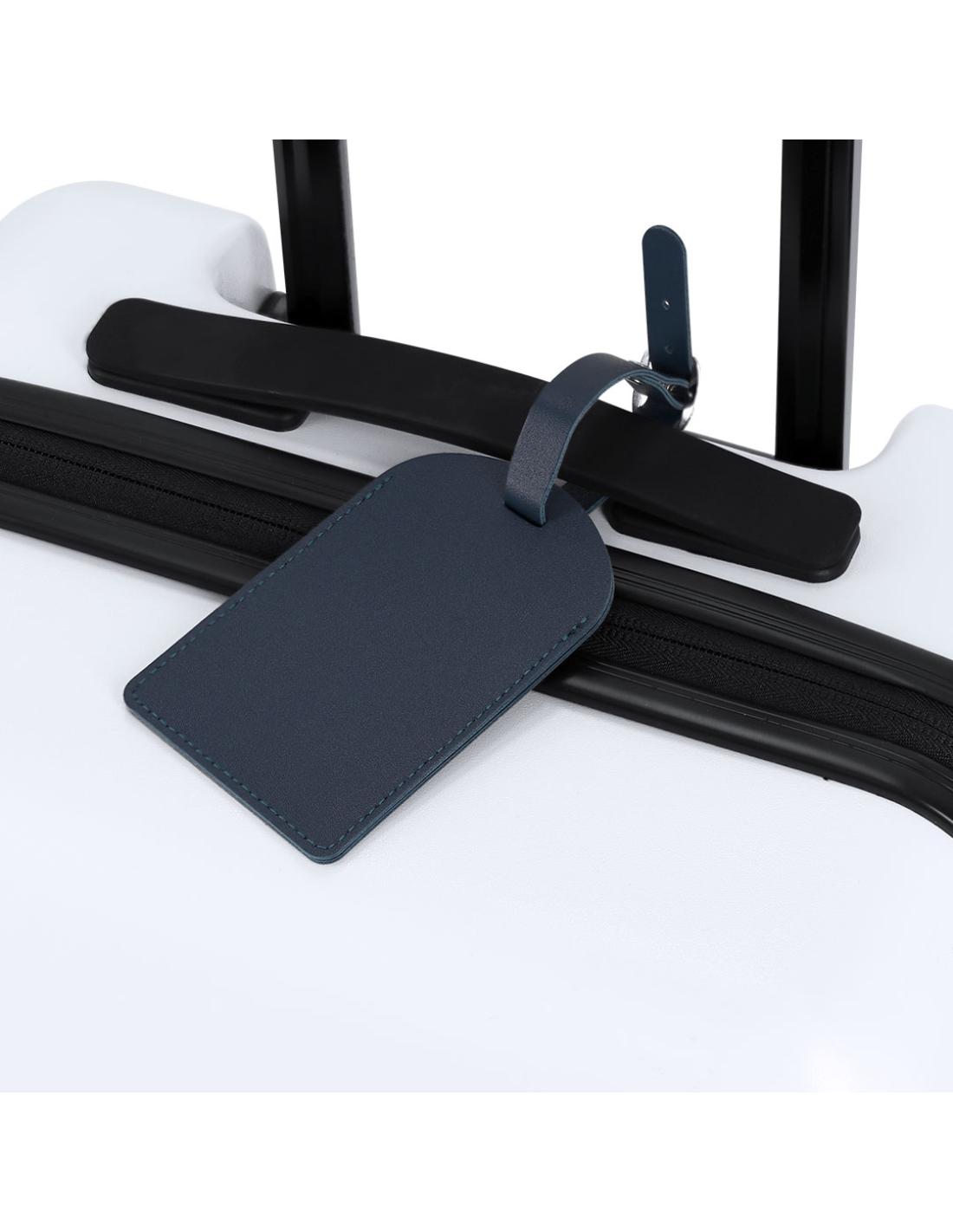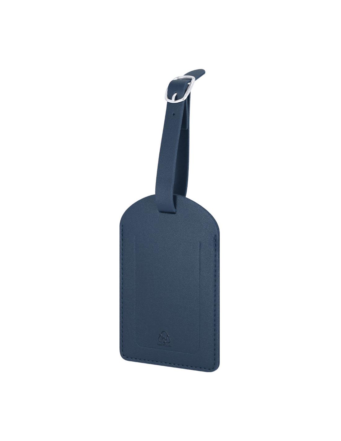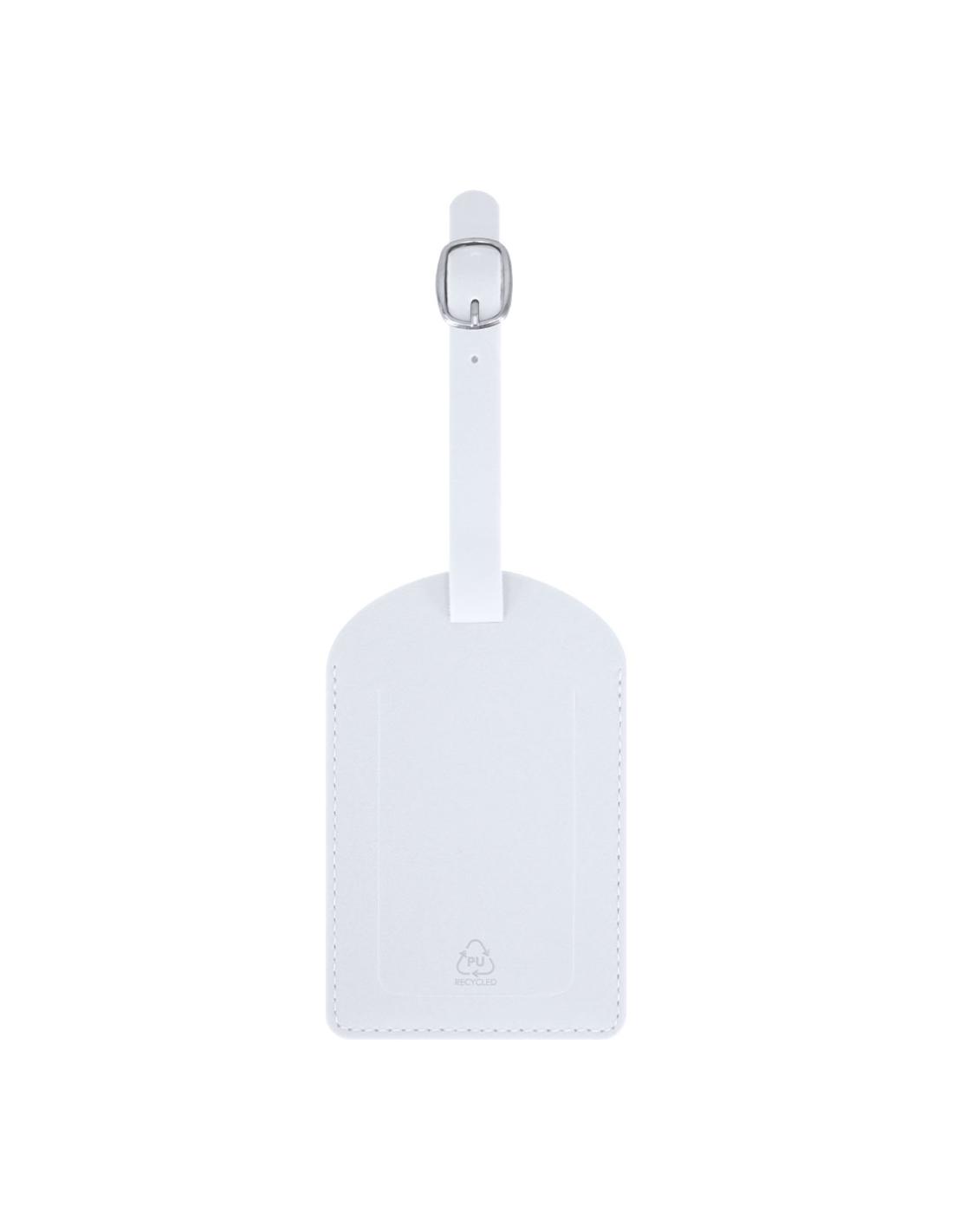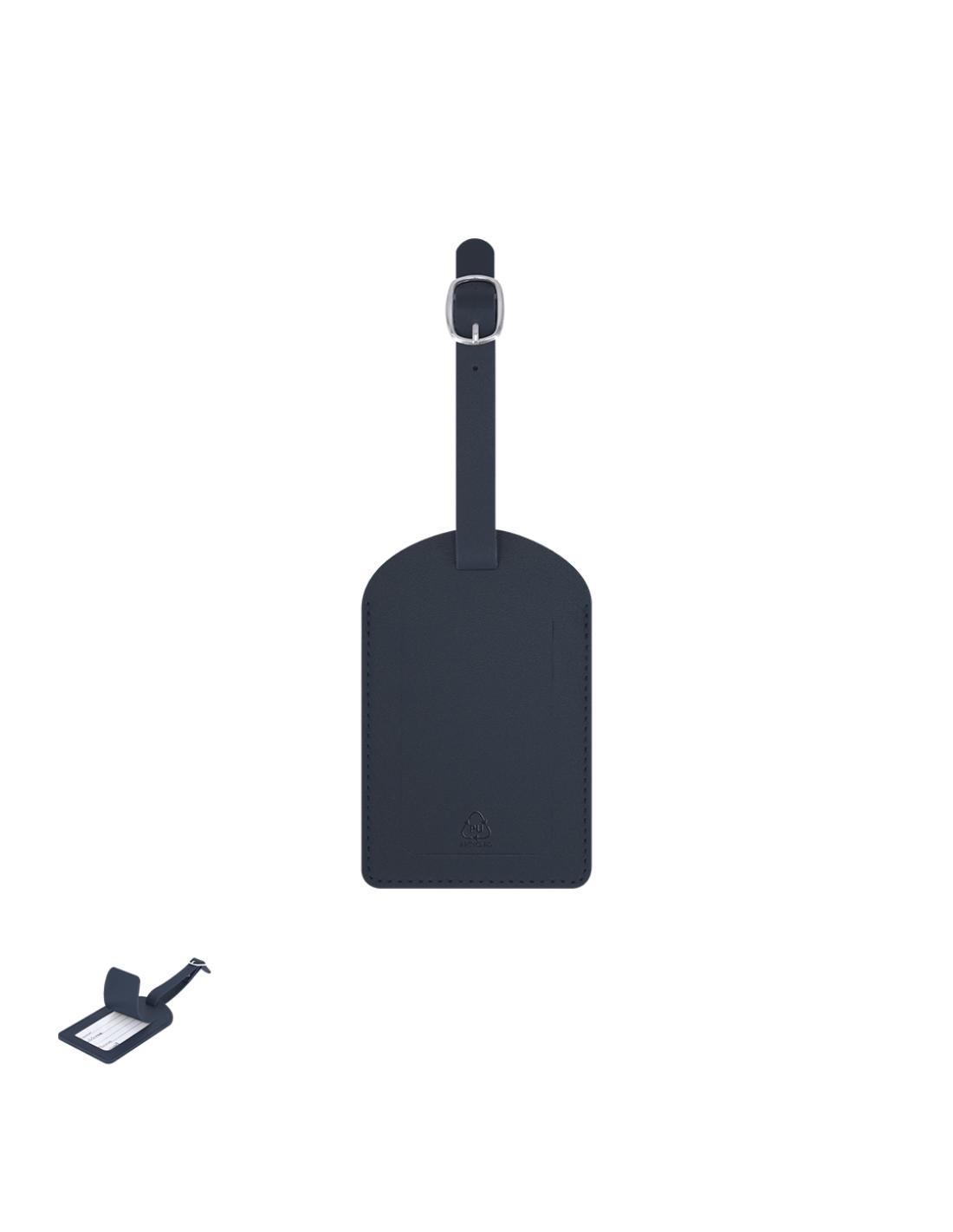 Identificador para maletas fabricado en PU Reciclado. Para enganchar a cualquier maleta gracias a su hebilla ajustable. Con ventana y etiqueta distintiva de PU Reciclado.