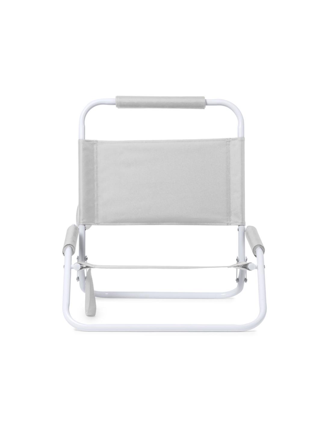 Silla plegable ligera y resistente, con estructura metálica lacada en color blanco. Respaldo y asiento en poliéster 600D, con acolchado en espuma a juego en reposabrazos y reposacabezas. Con asa de transporte a juego y disponible en variada gama de colores.