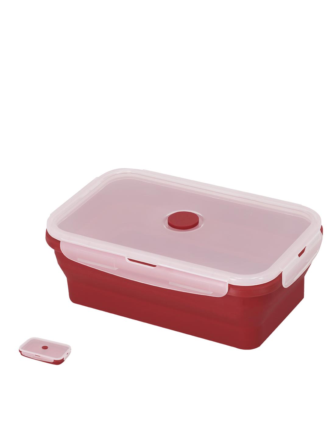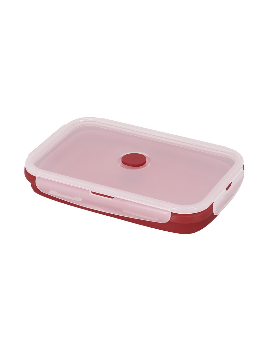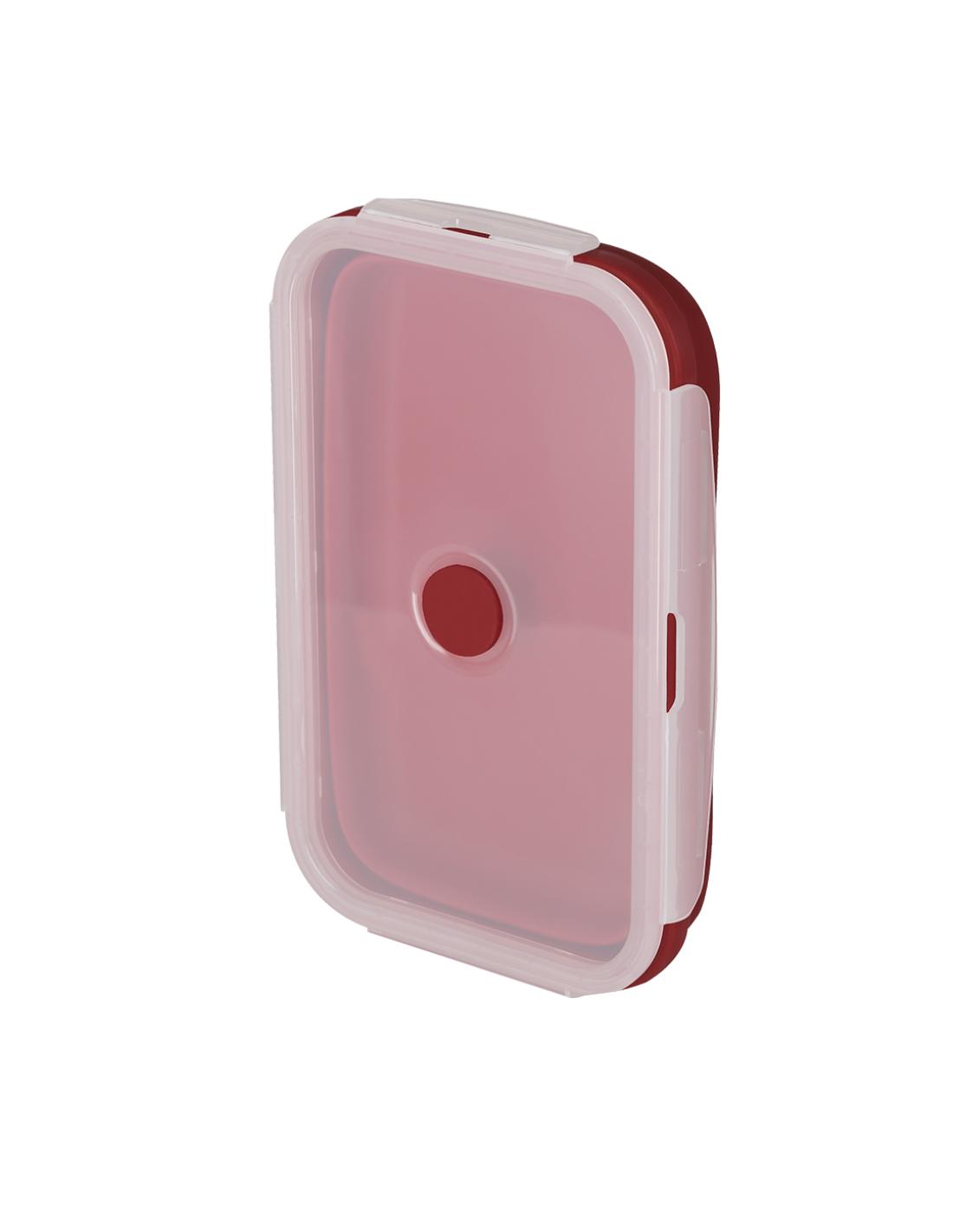 Fiambrera plegable de 1,2 L de capacidad. Fabricado en silicona de alta calidad con tapa en PP rígida translúcida con cierre de seguridad. Con cuerpo flexible de acabado mate, esta fiambrera puede ser plegada para un cómodo y sencillo almacenamiento. Libre de BPA. Con logo Food Grade en base.
