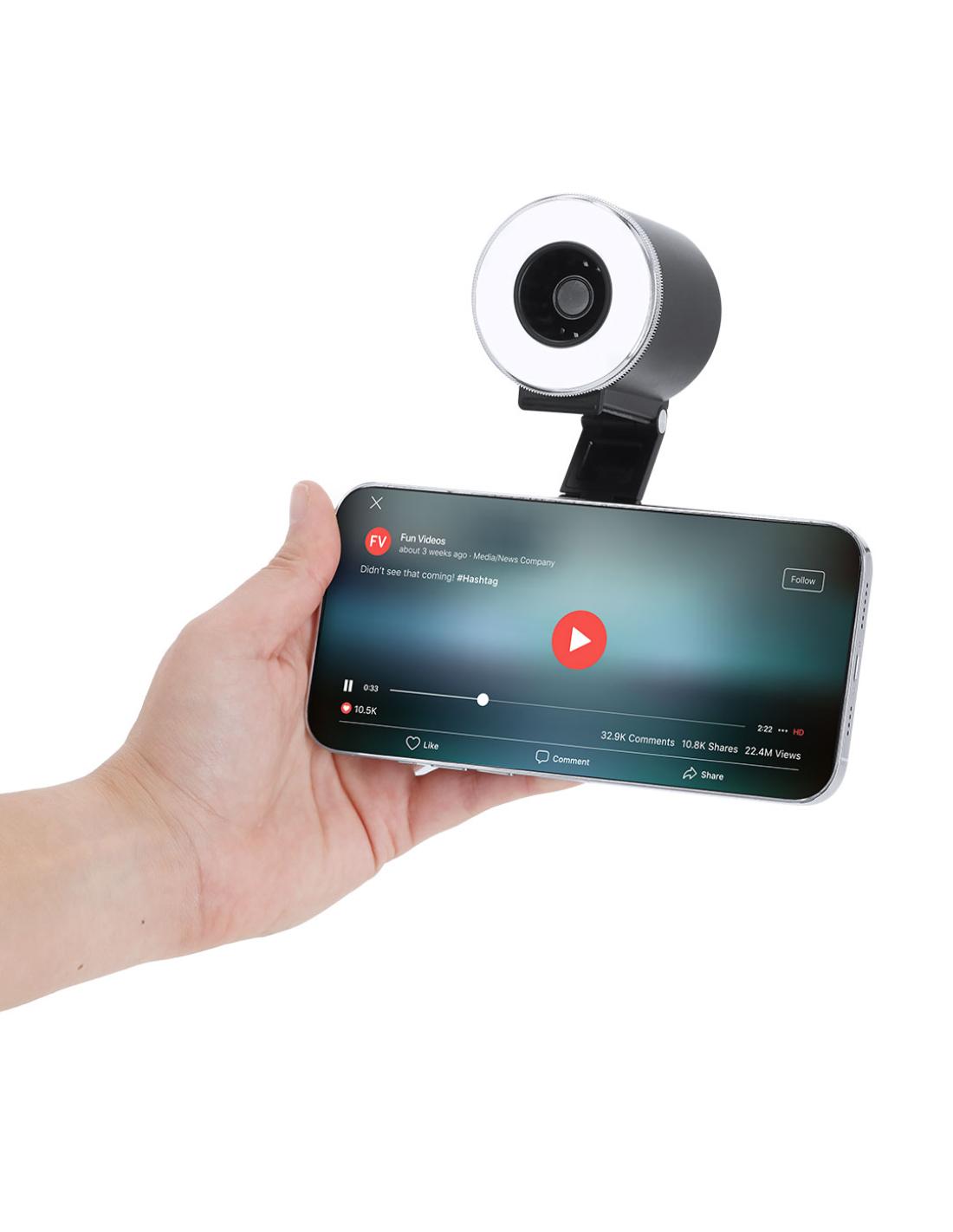 Anillo de luz con ventilador fabricado en resistente ABS con acabado mate. Incluye soporte magnético multiposición extensible para smartphone. Ventilador con 3 velocidades con opción a cambio a través de botón. El anillo de luz cuenta con 16 LEDs con opción a 3 niveles de intensidad de luz. Incluye botón de encendido y apagado, control de luz y velocidad. Batería de 500mAh recargable por cable de carga tipo C incluido, 5V.