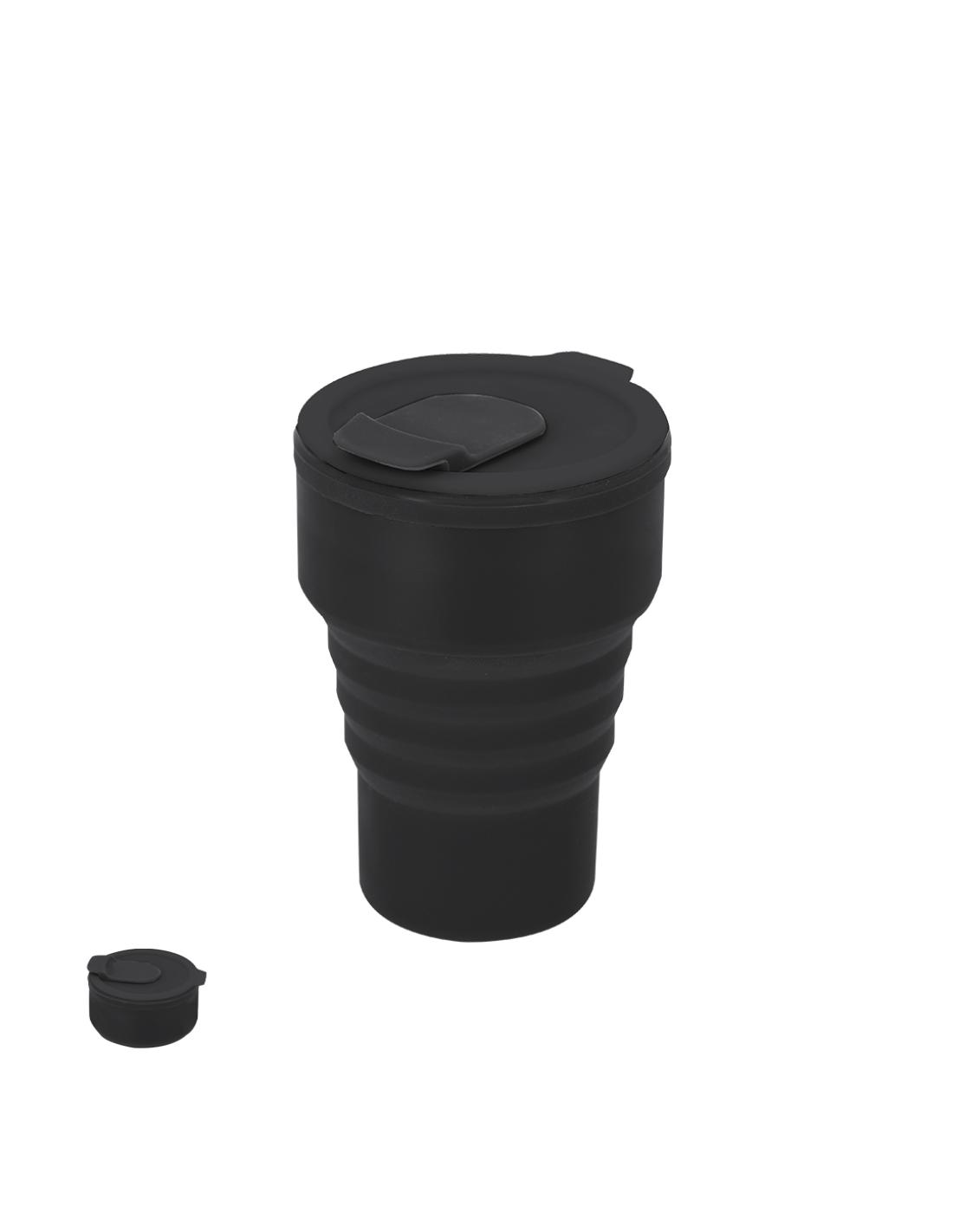 Vaso plegable de 350 ml de capacidad. Fabricado en silicona de alta calidad con tapón a juego. Tapa con boquilla deslizante. Con cuerpo flexible de acabado mate, este vaso puede ser plegado para un cómodo y sencillo almacenamiento. Libre de BPA.