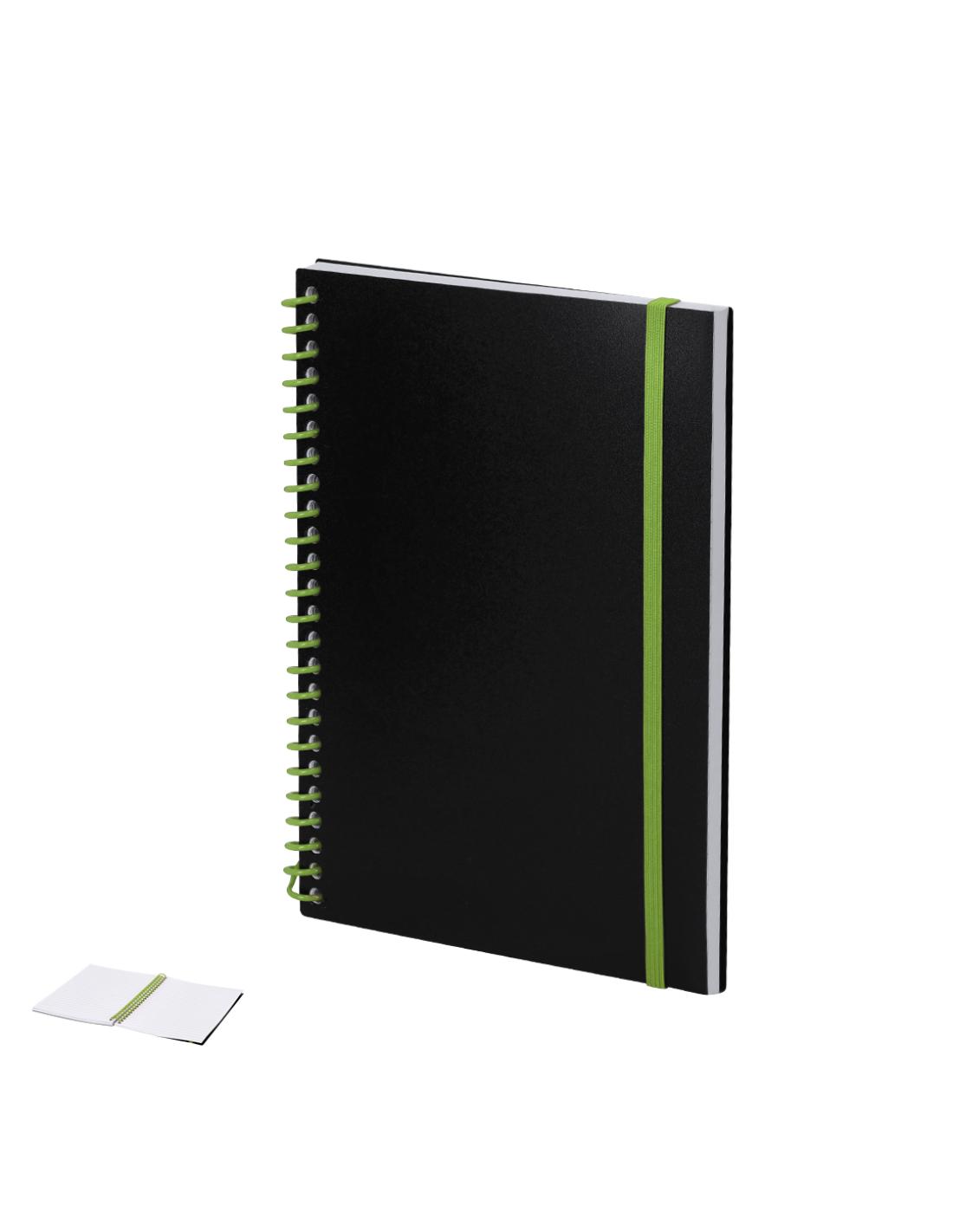 Libreta de anillas con tapas flexibles fabricadas en PP. Interior con 80 hojas color blanco de disposición a una raya. Incluye goma elástica a juego con anillas.