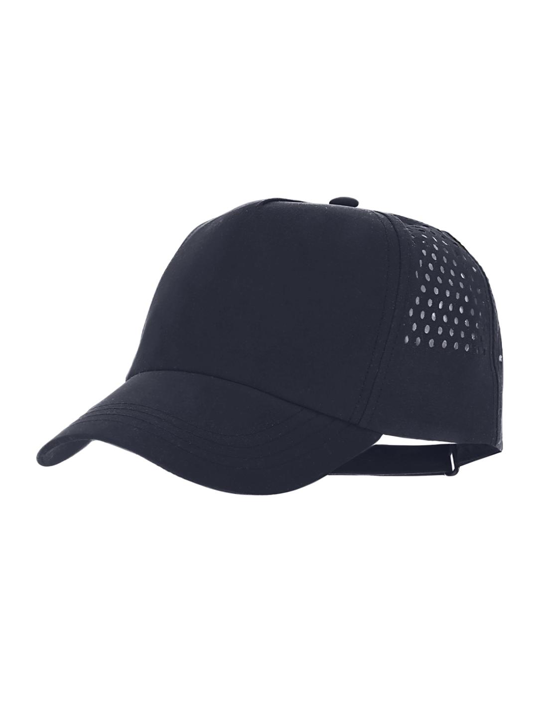 Gorra de 5 paneles en microfibra, parte trasera con diseño perforado, para óptima transpirabilidad y cierre ajustable de velcro.