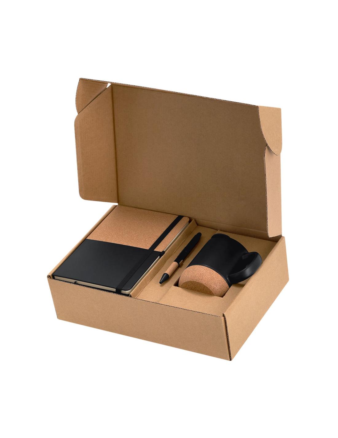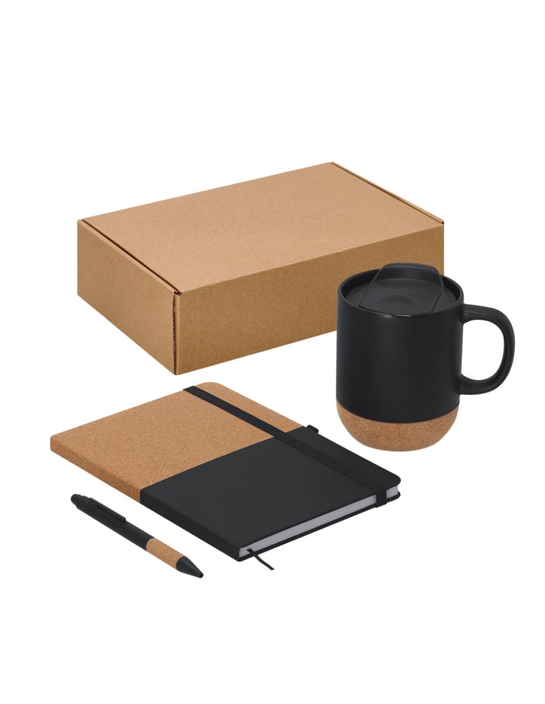 Set de bloc de notas, bolígrafo y taza . Incluye:- Bloc de notas de tapas rígidas, de corche y PU, marcapáginas de tela y elástico de sujeción a juego. 80 hojas interiores con disposición a una raya.- Bolígrafo con cuerpo recubierto en corcho y aluminio. Elegante clip y accesorios a juego, de mecanismo pulsador y en tinta azul.- Taza de cerámica con capacidad de 330ml, con diseño de base en corcho. Incluye tapa con boquilla deslizante.