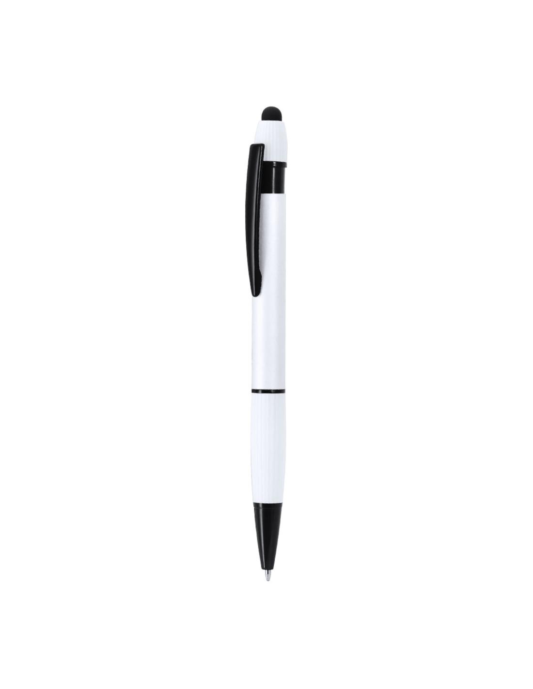 Bolígrafo puntero con cuerpo en Aluminio reciclado. Empuñadura de acabado gomoso. En la parte superior tiene un puntero negro. Clip metálico y accesorios en negros. En tinta azul.Distintivo aluminio reciclado en la parte superior del bolígrafo.