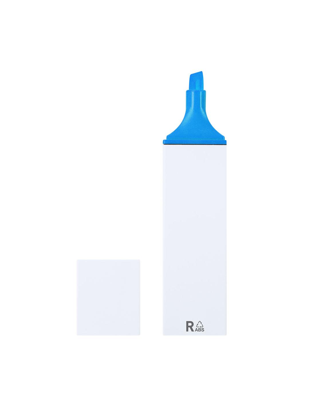 Marcador fluorescente fabricado en ABS reciclado. Con cuerpo en color sólido y capucha a juego. Con distintivo RABS impreso en el marcador.