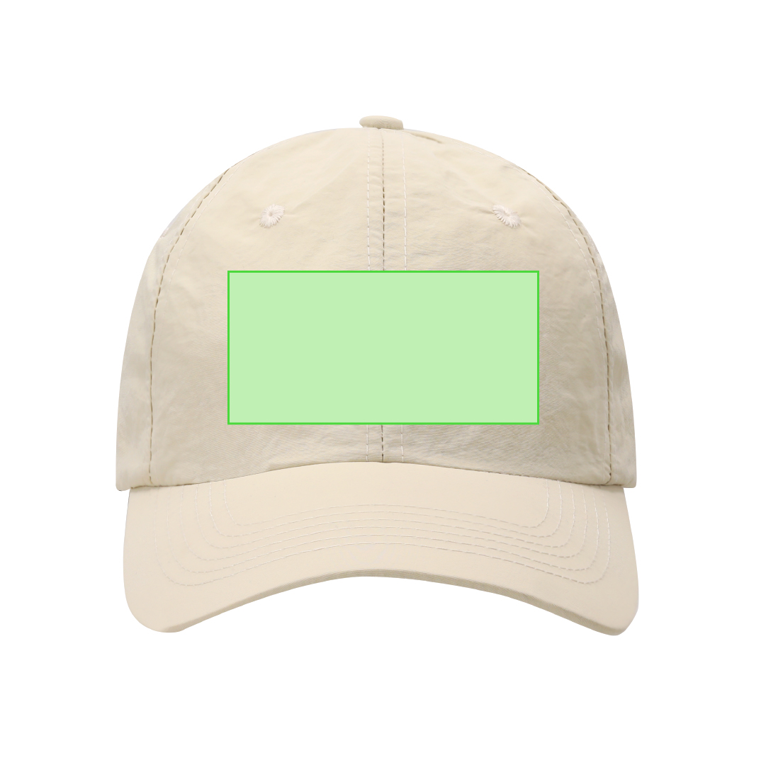 Gorra de soft nylon, de 6 paneles. Con orificios de ventilación y cierre ajustable de hebilla metálica.