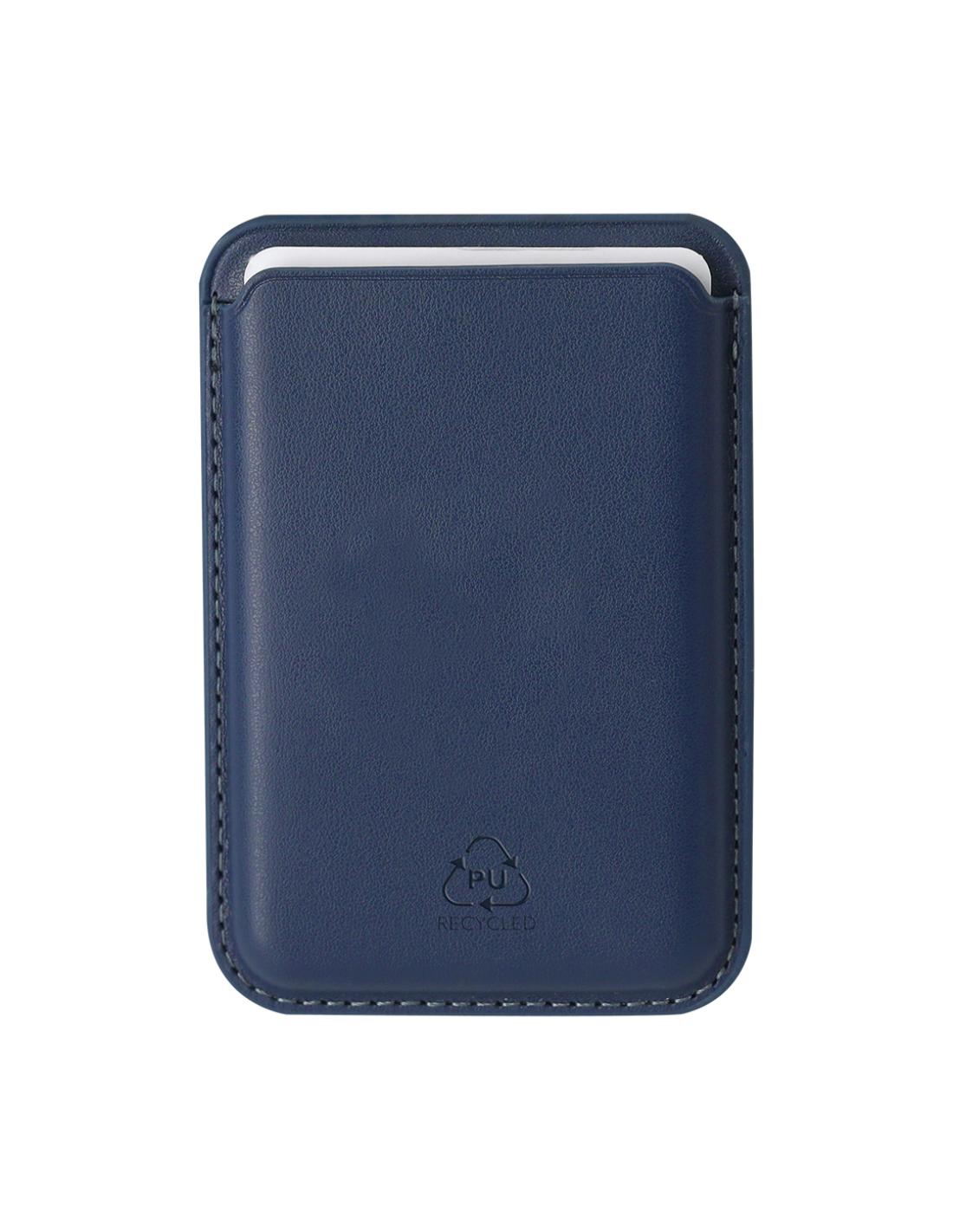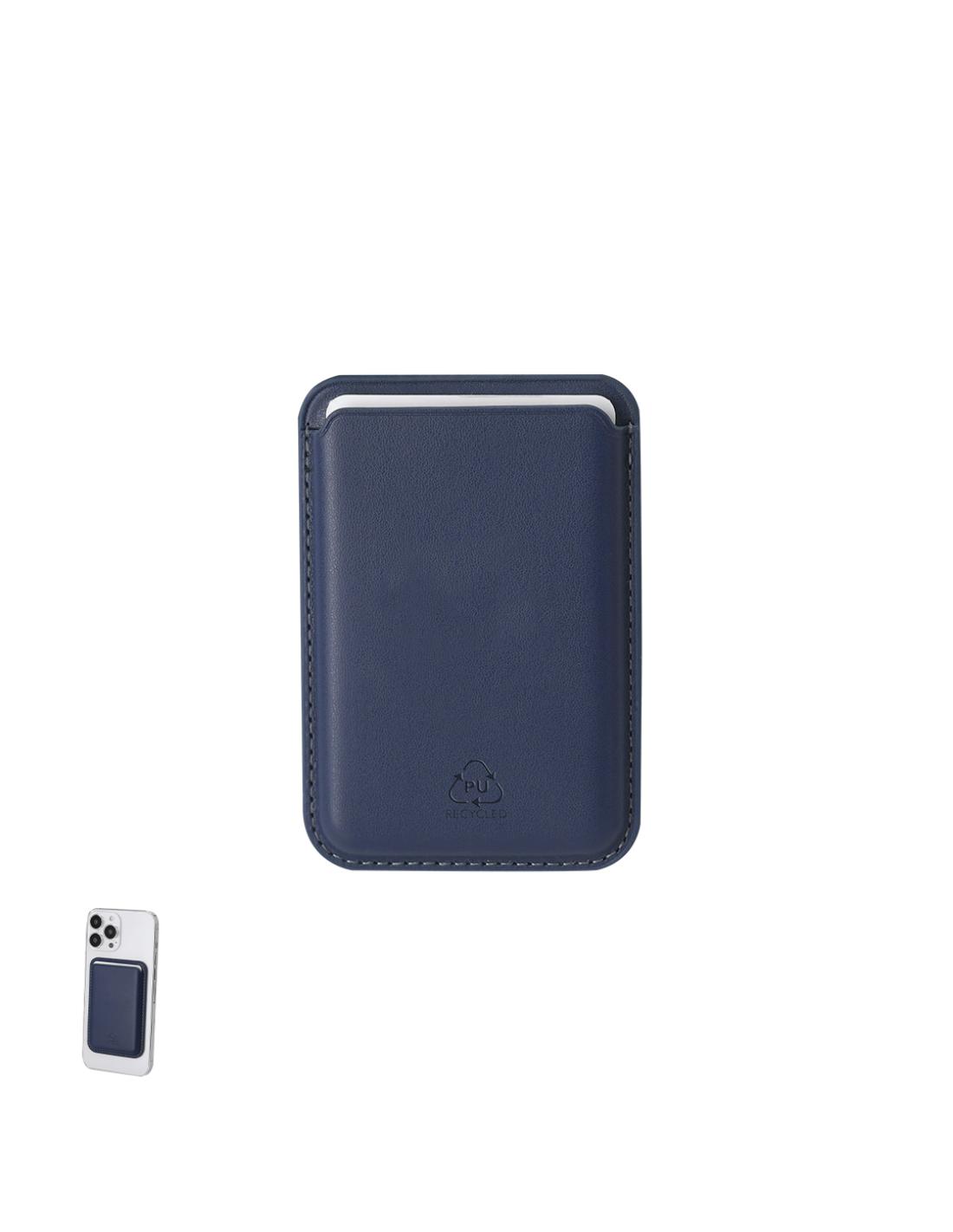 Funda tarjetero en elegante PU reciclada. Con sistema de fijación magnética. Incluye orificio en la parte trasera para fácil extracción de tarjetas. Con distintivo PU reciclado.