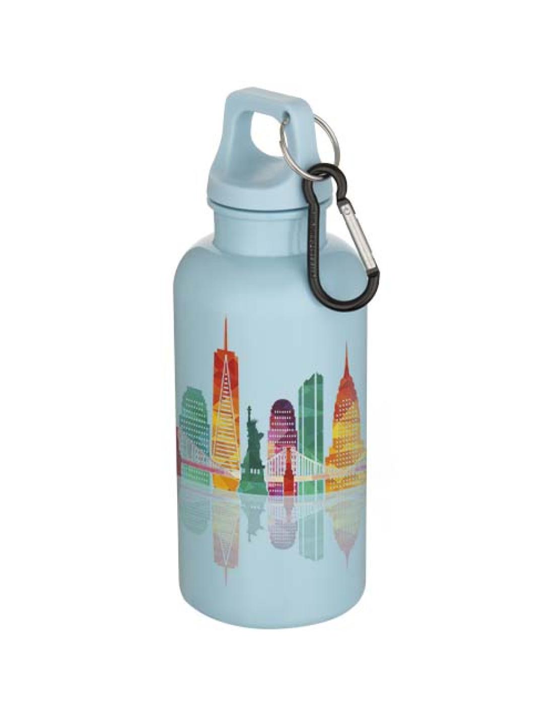 Mantener la hidratación en todo momento es posible con esta botella de agua de 400 ml, duradera y ligera, fabricada en PET reciclado con certificado RCS. Es la compañía perfecta mientras haces ejercicio, en excursiones de un día o en la oficina. La botella "Oregon" de una sola pared tiene una tapa de rosca y ofrece mucho espacio para añadir cualquier logotipo. Engancha de forma segura el mosquetón que incluye (no apto para escalar) a una bolsa para evitar perderla. Fabricada conforme al proceso de reciclado de PET aprobado por la EFSA.