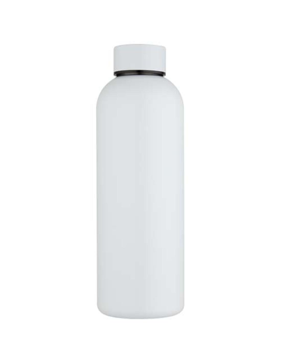 La botella "Spring" de pared simple de acero inoxidable reciclado con certificado RCS tiene una tapa de rosca y un acabado pulverizado mate. Ligera y duradera, esta cantimplora es ideal para la hidratación diaria. Capacidad: 750 ml.