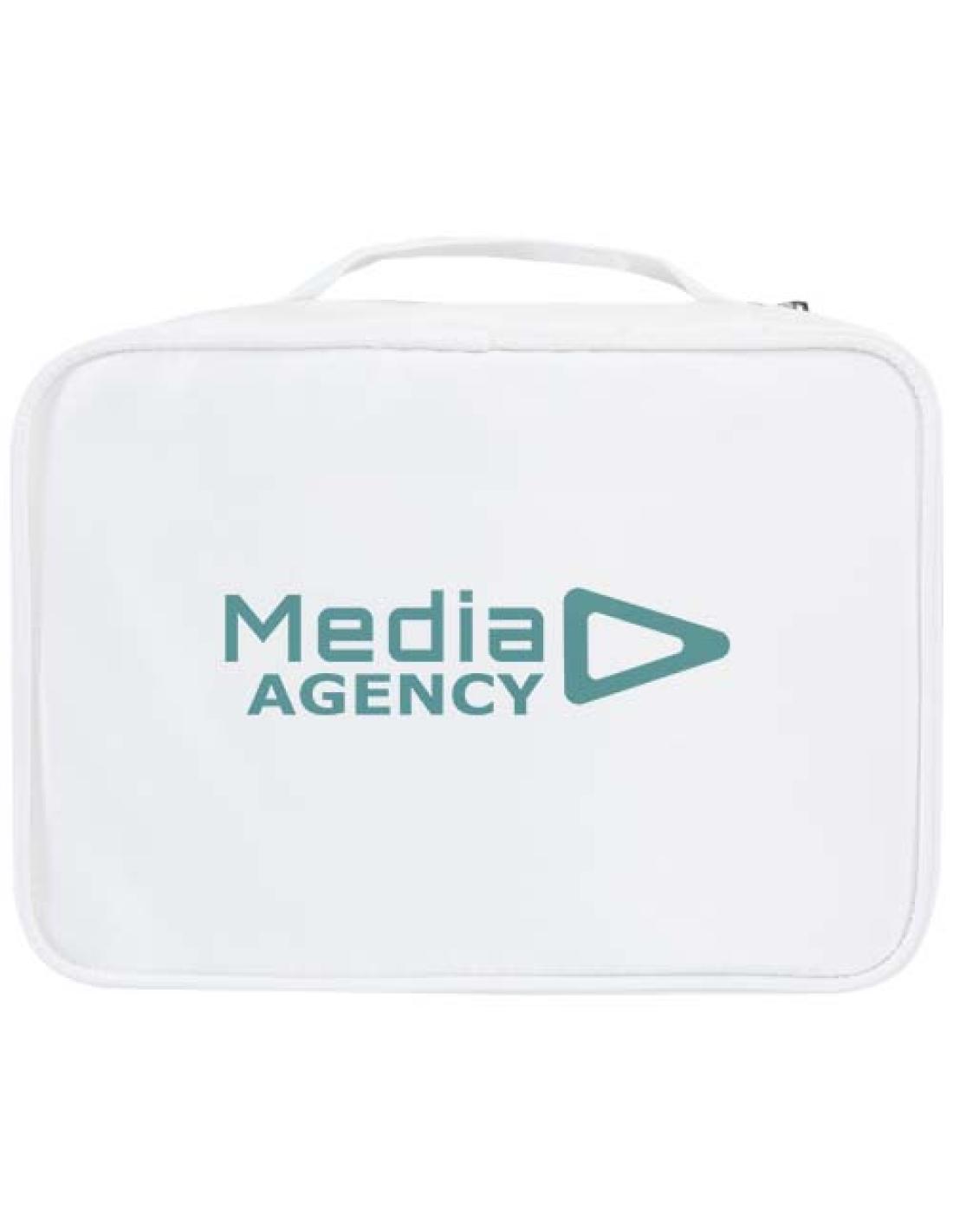 Ideal para viajar, el organizador para maquillaje "Muse" es ideal para guardar pinceles, maquillaje compacto, productos de cuidado de la piel y otros artículos de belleza de forma limpia y ordenada. Fabricado en poliéster reciclado con certificado GRS, combina practicidad con una elección de material más sostenible.