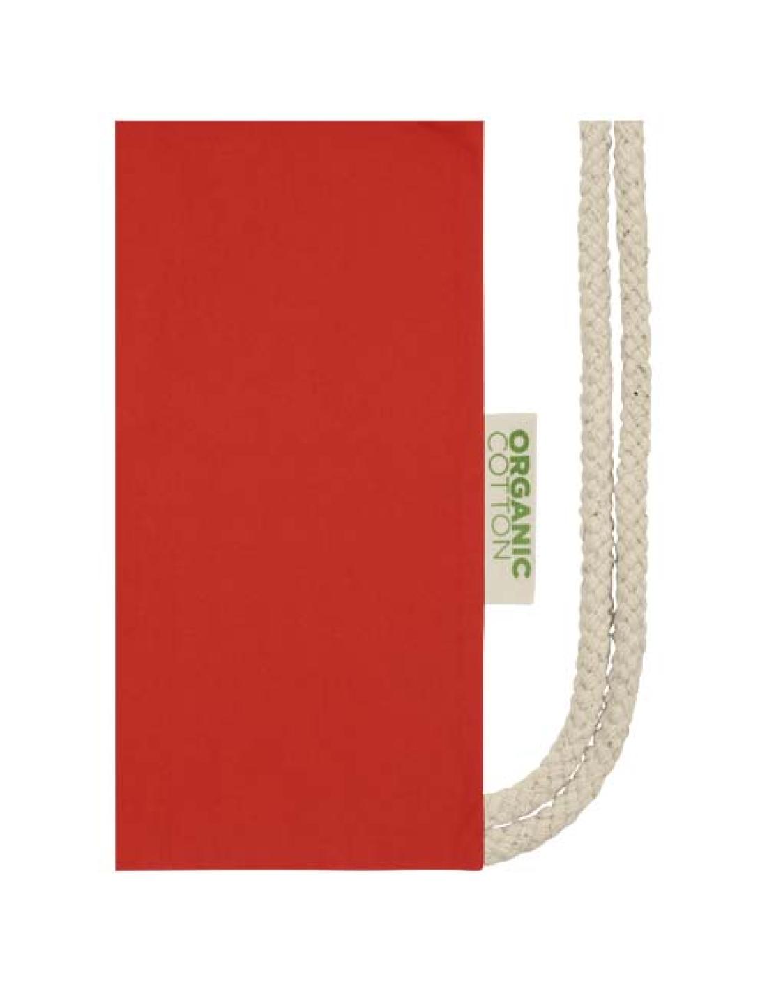 Bolsa con cordón fabricada en algodón orgánico 100 % con certificado OCS de 140 g/m² procedente de la India. La bolsa cuenta con un gran compartimento principal y un cierre de cordón de algodón para mantener todas las pertenencias a salvo y seguras. Resistencia para hasta 5 kg de peso. Capacidad: 5 litros.