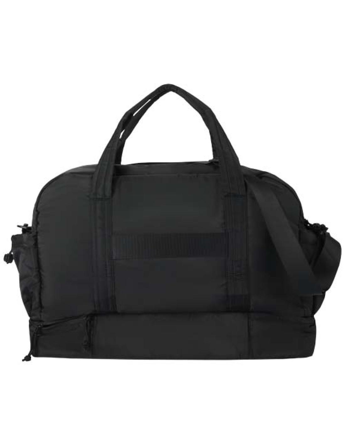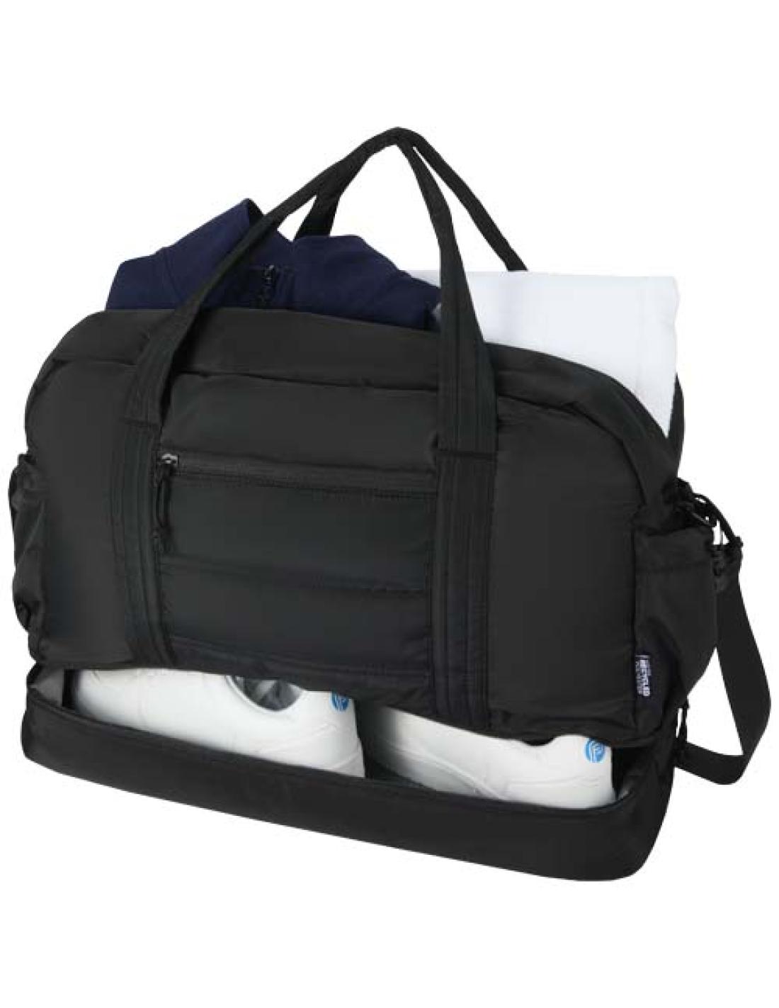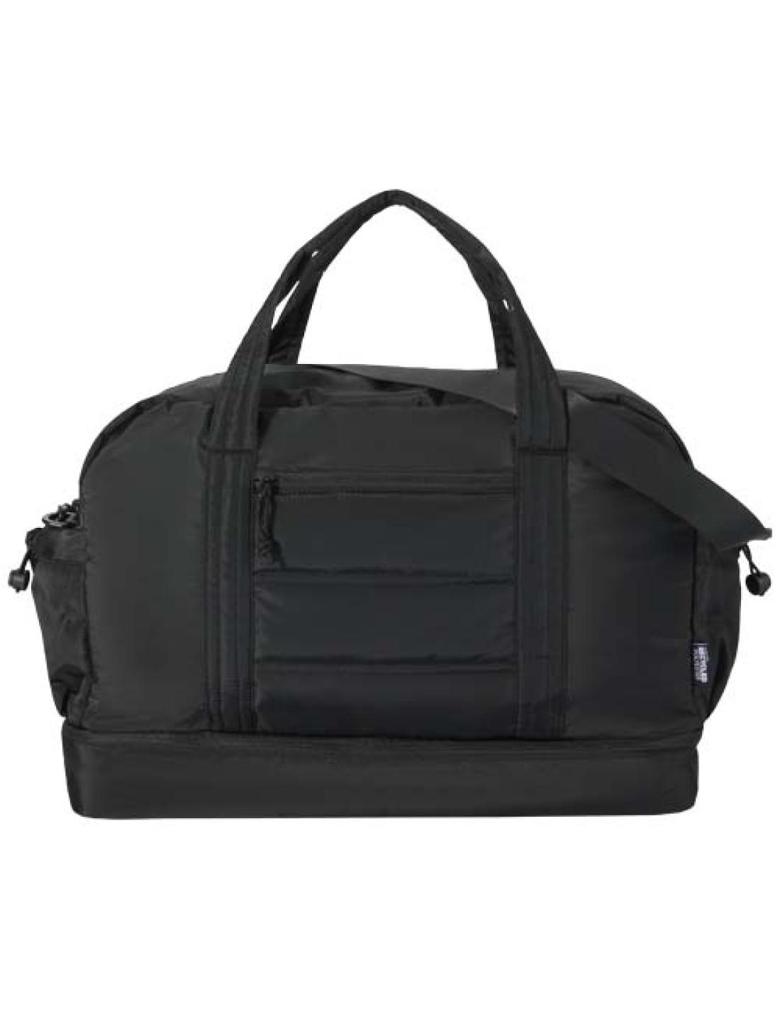 La bolsa de lona "Puffer" combina un diseño distintivo y materiales reciclados con certificado GRS de primera calidad para ofrecer practicidad en el día a día. Con una capacidad de 30 litros, es perfecta para viajes cortos, ir al gimnasio o uso diario. La bolsa cuenta con un gran compartimento principal con cremallera para la ropa y el equipo, un compartimento inferior aislado con forro de PEVA para separar los objetos húmedos de los secos, y múltiples bolsillos interiores y exteriores para una buena organización. Una correa para sujetarla a la maleta, una correa ajustable para el hombro y asas proporcionan opciones de transporte versátiles. Ligera y repelente al agua, esta bolsa de lona está diseñada para adaptarse a tu estilo de vida.