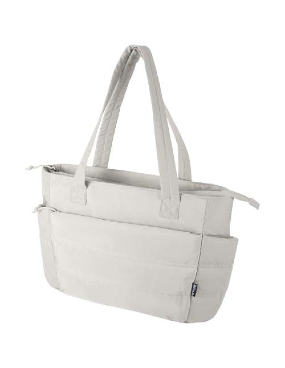 La bolsa Tote "Puffer" combina materiales reciclados con certificado GRS y un diseño elegante y moderno. Con una capacidad de 18 litros, incluye una funda acolchada para portátiles de hasta 15,6" y múltiples bolsillos interiores y exteriores para guardar libretas, cargadores, botellas de agua y otros artículos esenciales. Las largas asas acolchadas y la correa para sujetarla a la maleta garantizan un transporte cómodo, mientras que el acolchado proporciona protección y un aspecto elegante. Ligera y repelente al agua, esta bolsa Tote es una opción ideal para profesionales y estudiantes que se desplazan a menudo.