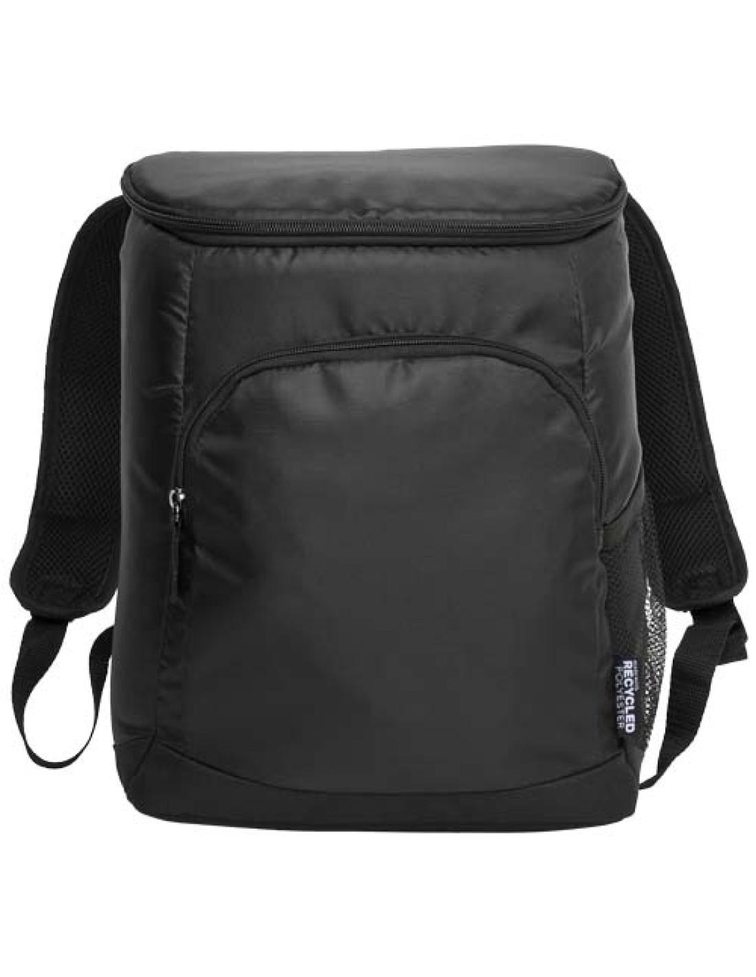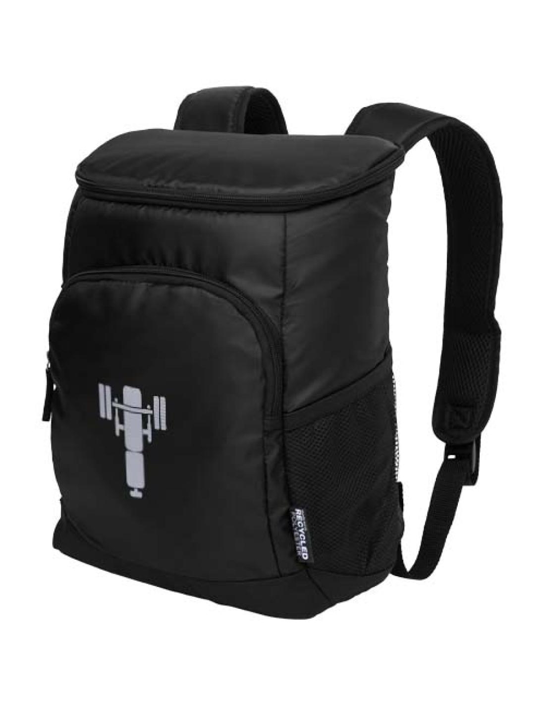 Fabricada con aislamiento térmico de alta densidad, esta mochila cuenta con un compartimento principal con cremallera, un bolsillo frontal con cremallera, un bolsillo lateral de malla y correas ajustables acolchadas. Forro de PEVA a prueba de fugas y fácil de limpiar. Caben 18 latas. Sin PVC. Fabricado con poliéster 420D reciclado con certificación GRS.