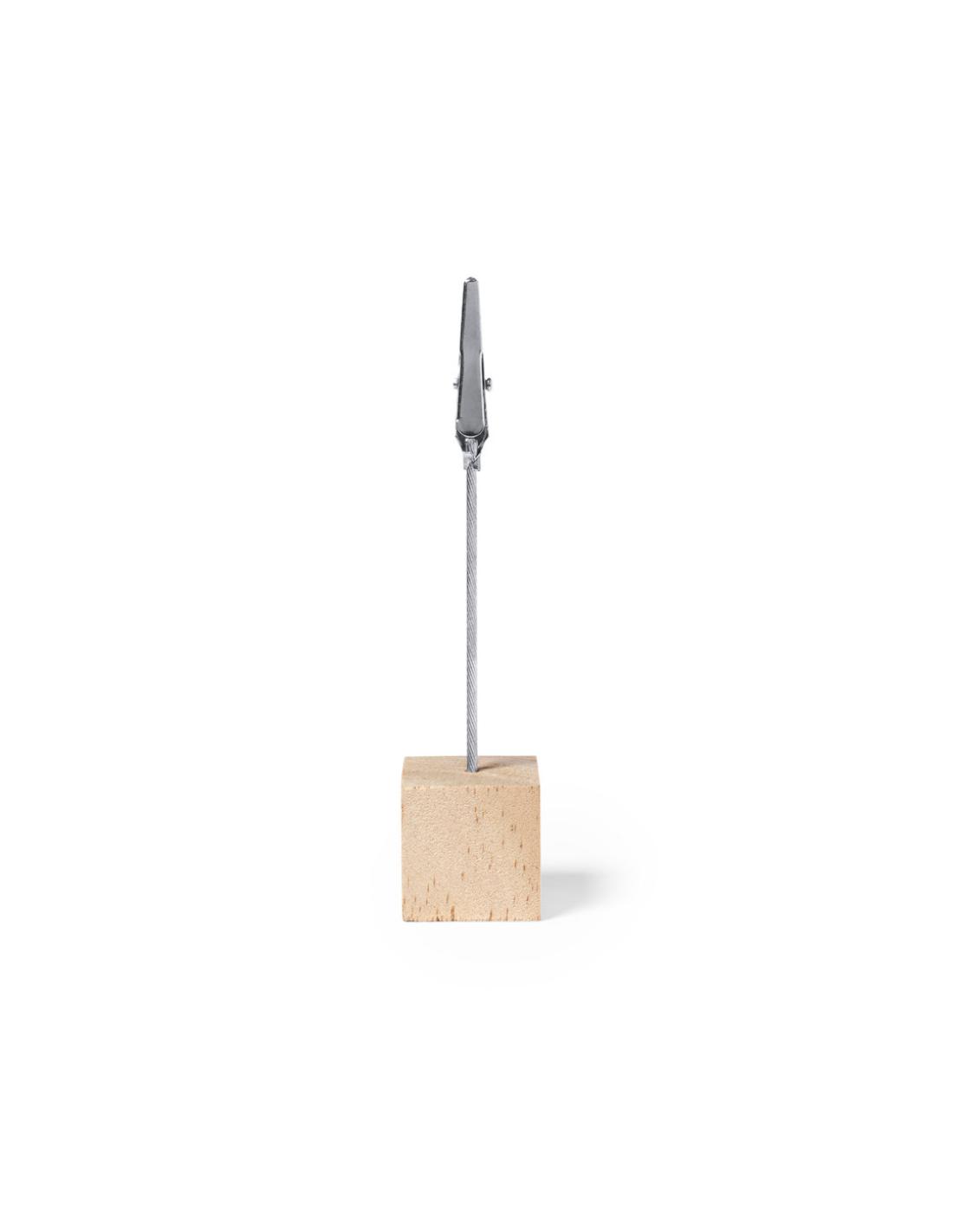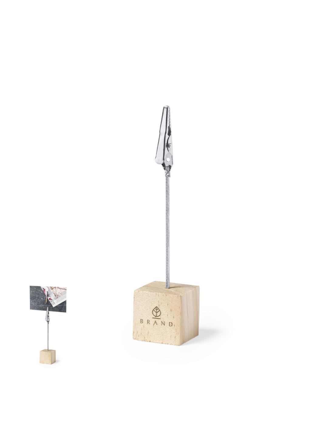 Clip de línea nature, con resistente base fabricada en madera de pino natural. Con poste y pinza metálicos para una firme sujeción de tarjetas, notas, fotos…