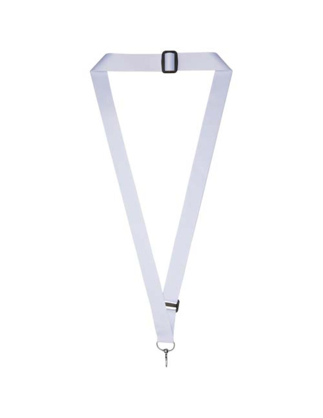 Lanyard ajustable con hebilla deslizante para cambiar fácilmente la longitud y un robusto mosquetón metálico para sujetar con seguridad una tarjeta de identificación o las llaves. Se puede imprimir por una o por las dos caras, con la opción de impresión a doble cara estándar o ajustada (la versión ajustada garantiza que el diseño quede alineado por las dos caras). Fabricado en Europa.
