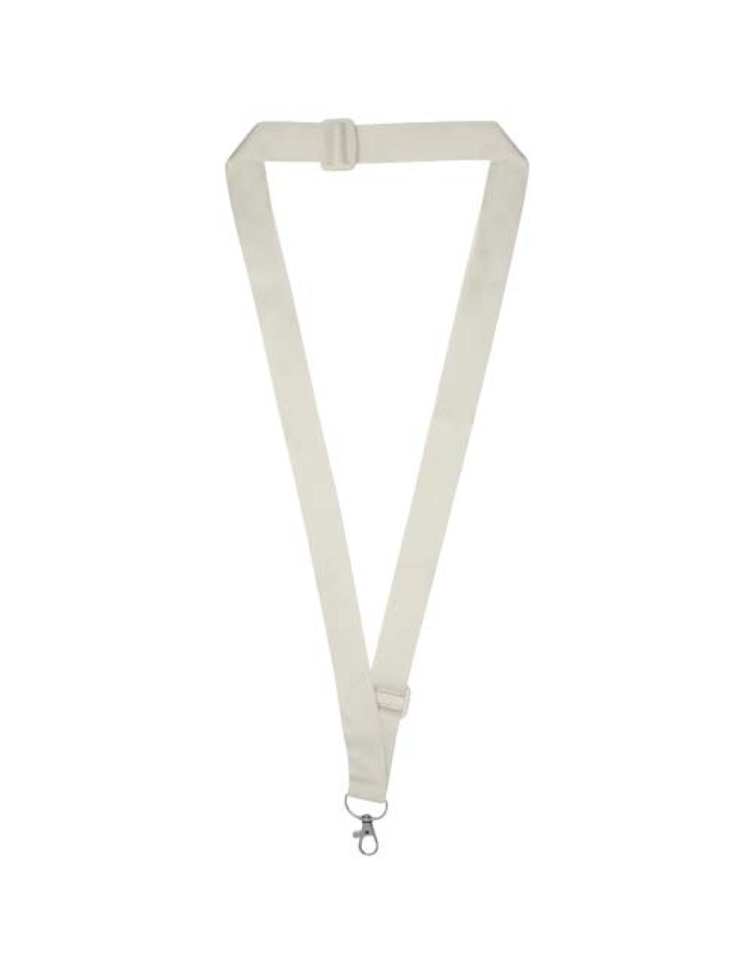 Lanyard de RPET con hebilla deslizante para ajustar la longitud y lograr comodidad. Tiene un mosquetón metálico para sujetar una tarjeta de identificación o las llaves. Se puede imprimir por una o por las dos caras, con la opción de impresión a doble cara estándar o ajustada (la versión ajustada garantiza que el diseño quede alineado por las dos caras). Fabricado en Europa.