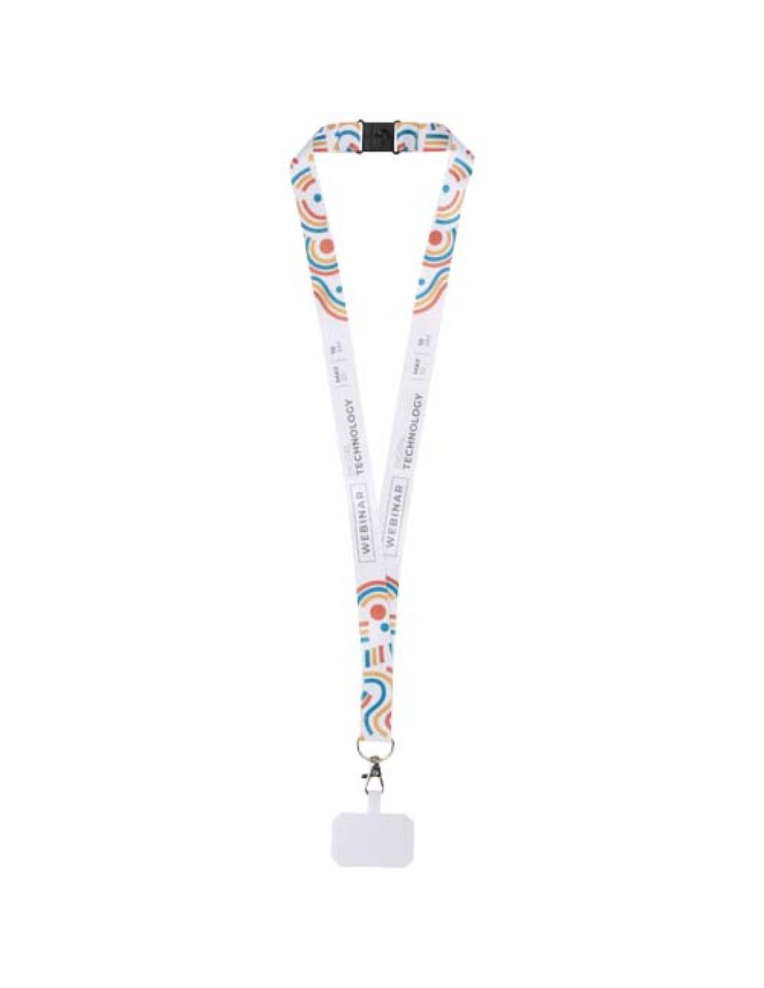 Mantén tu teléfono a mano con este práctico lanyard de RPET con soporte para teléfono, disponible con impresión por sublimación a todo color en una o ambas caras. Para la impresión a doble cara, puedes elegir entre la opción estándar o la impresión ajustada, en la que el diseño se alinea en ambas caras. El lanyard está disponible con cuatro anchos: de 10, 15, 20 y 25 mm.