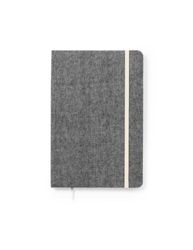 Bloc de notas de línea nature fabricado en 100% algodón reciclado. Con tapas duras y elástico de sujeción en contraste. Interior con 100 hojas lisas y marcapáginas de tela. Disponible en amplia gama de colores, con distintivo algodón reciclado en la contraportada. Certificación GRS (Global Recycled Standard / Estándar de Reciclaje Global), que garantiza el origen reciclado del material usado para fabricar el producto