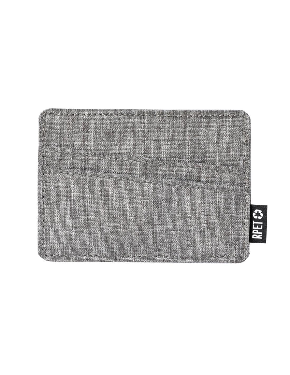 Elegante tarjetero fabricado en poliéster RPET 300D. Con 3 compartimentos independientes para tarjetas y distintivo RPET en la etiqueta exterior. El material RPET se elabora a partir de plástico reciclado, para así fomentar la reutilización de residuos plásticos y ayudar a la sostenibilidad del planeta.