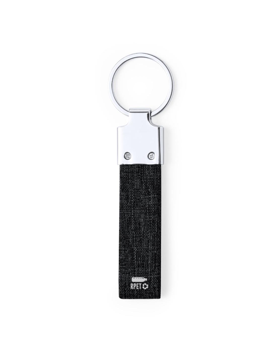 Elegante llavero con cinta fabricada en poliéster RPET 300D y accesorio cromado. Disponible en variada gama de colores, con distintivo RPET en la cinta y anilla metálica cromada. El material RPET se elabora a partir de plástico reciclado, para así fomentar la reutilización de residuos plásticos y ayudar a la sostenibilidad del planeta.