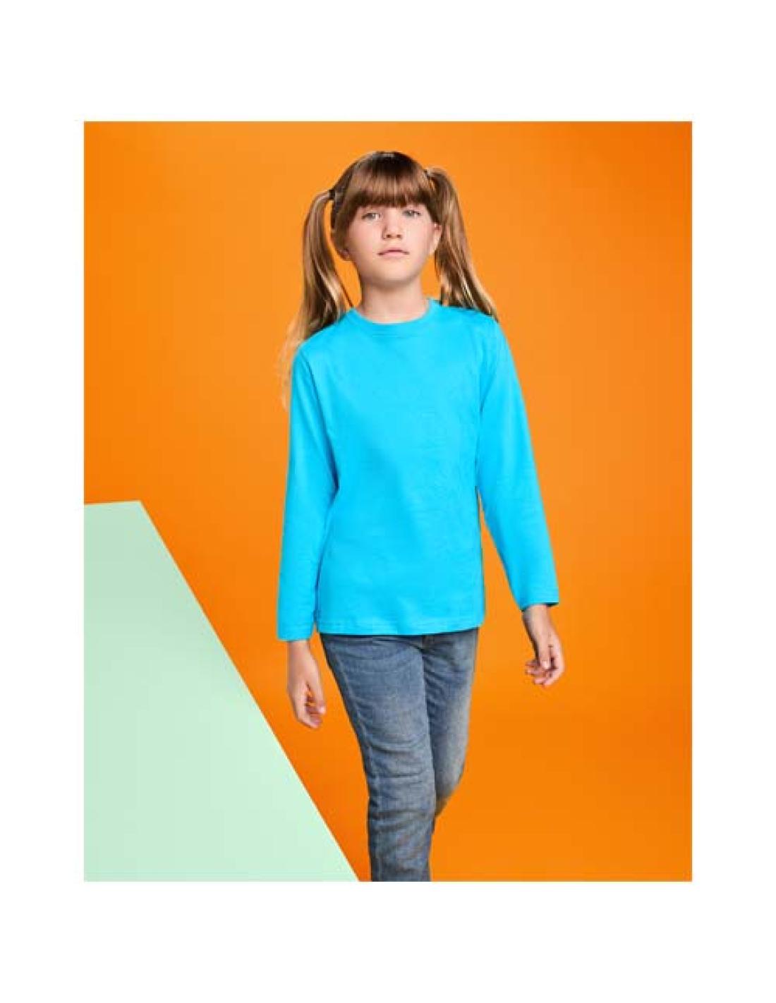 Camiseta de manga larga en tejido tubular con cuello redondo de 4 capas. Costuras cubiertas reforzadas en cuello y hombros. Sin puños.