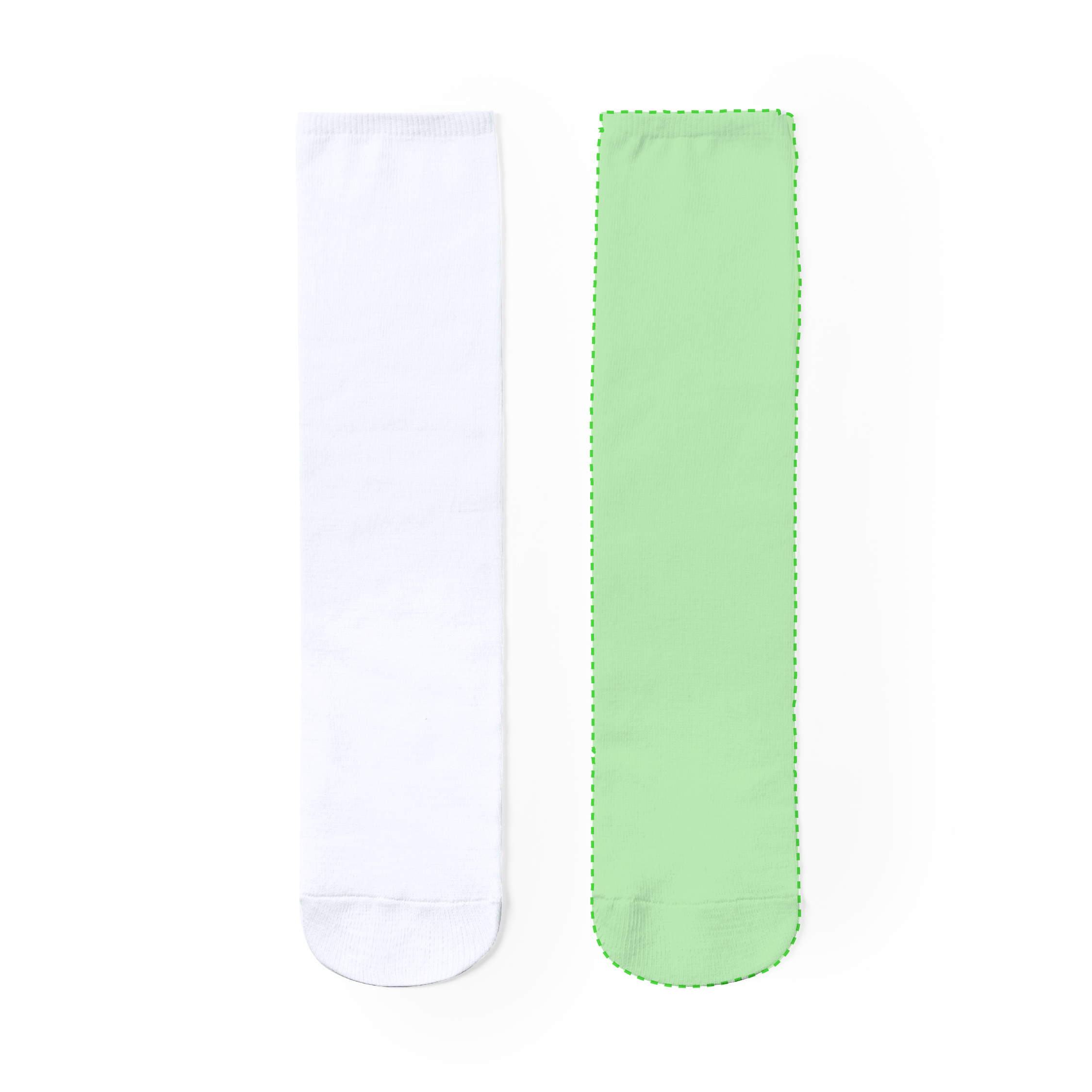 Par de calcetines fabricados en poliéster blanco y especialmente diseñados para marcaje en sublimación. En talla L-XL.