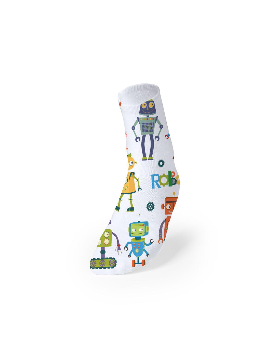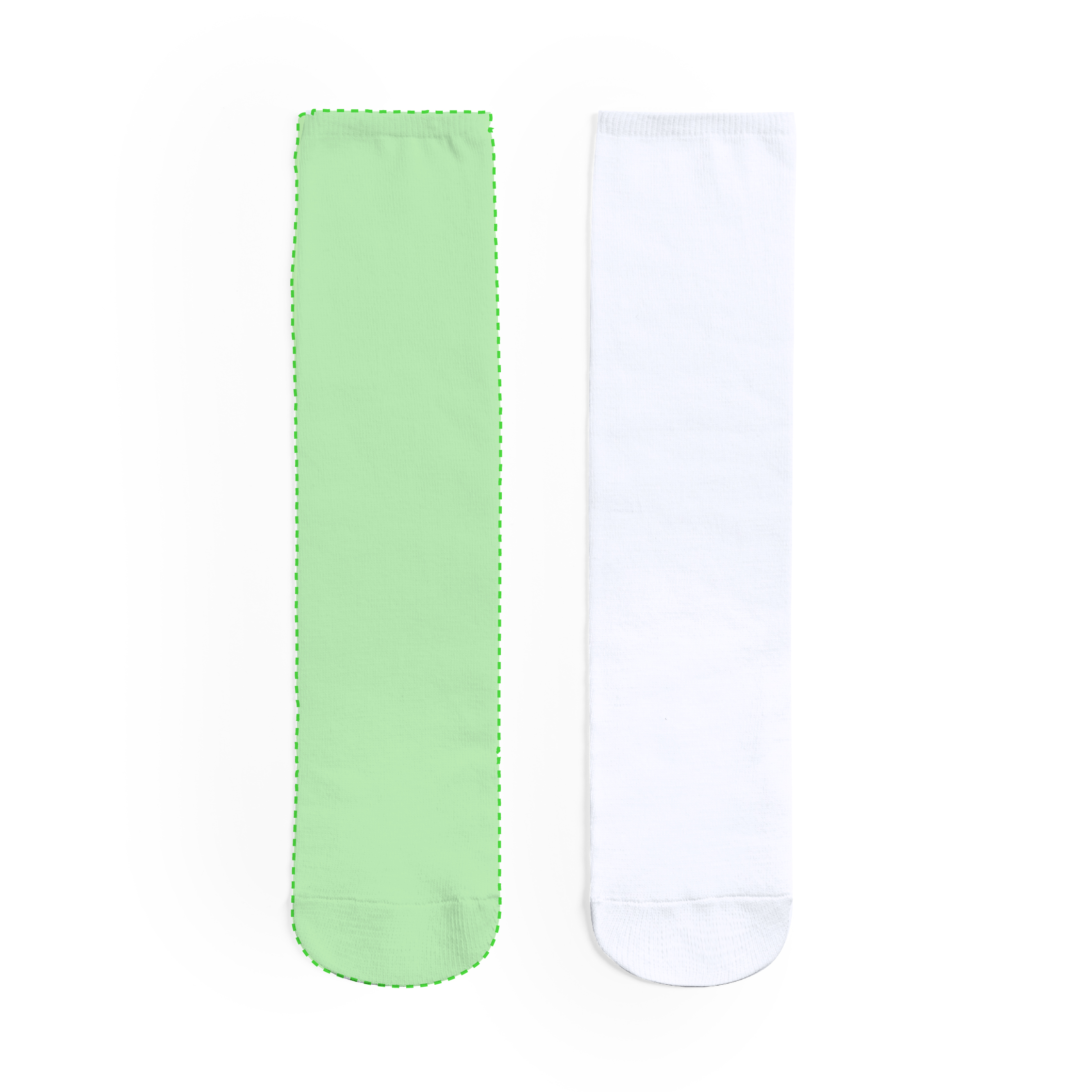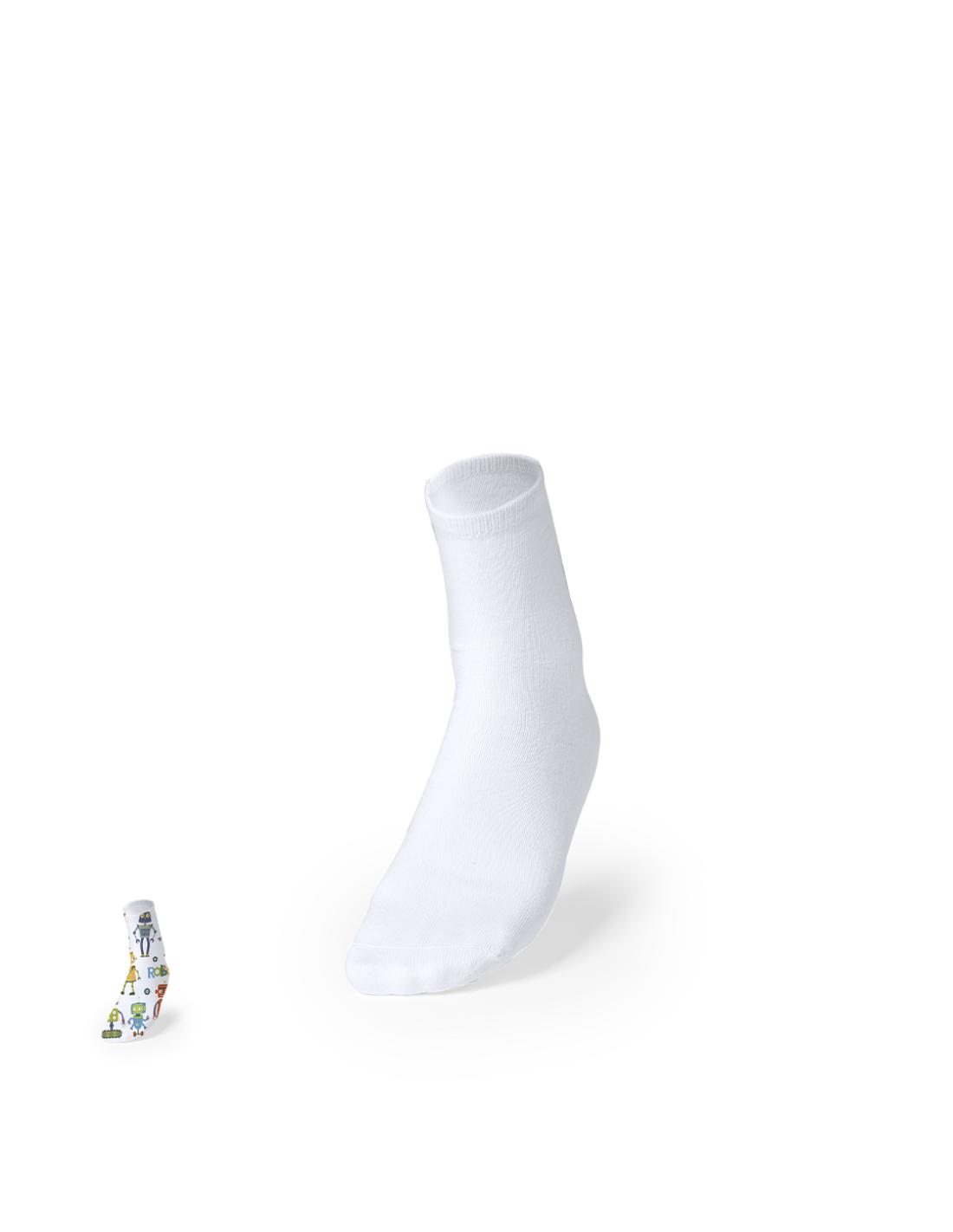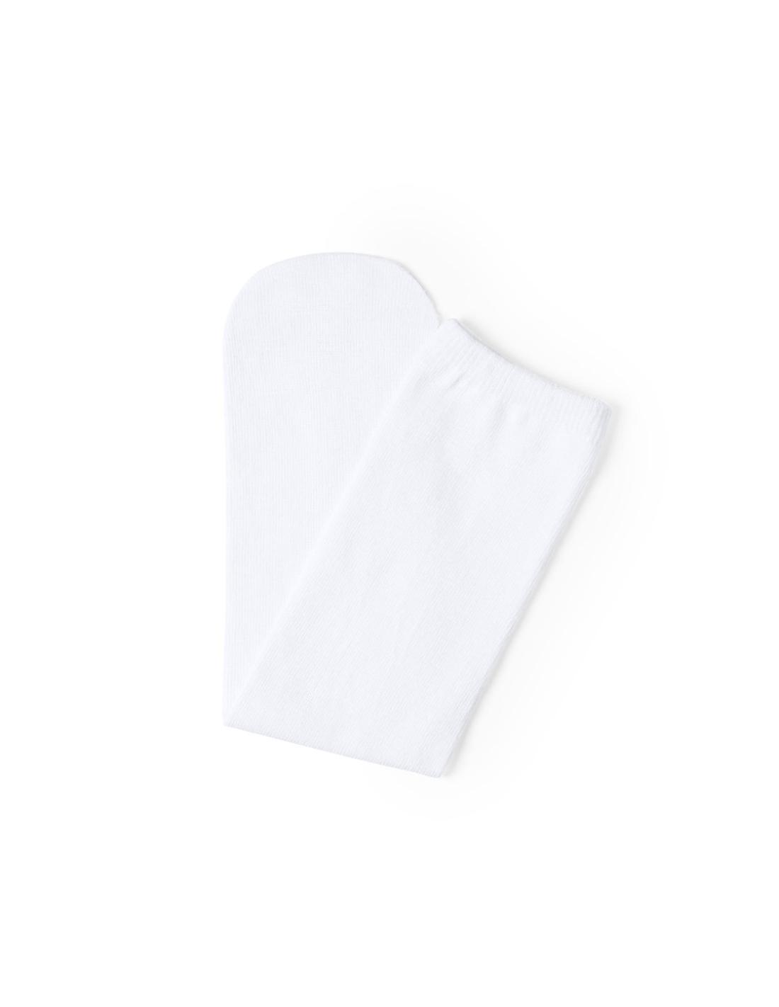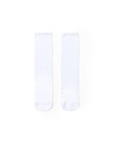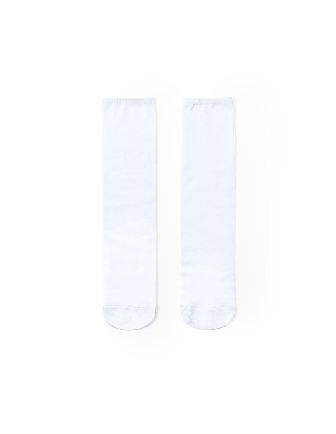 Par de calcetines fabricados en poliéster blanco y especialmente diseñados para marcaje en sublimación. En talla S-M.