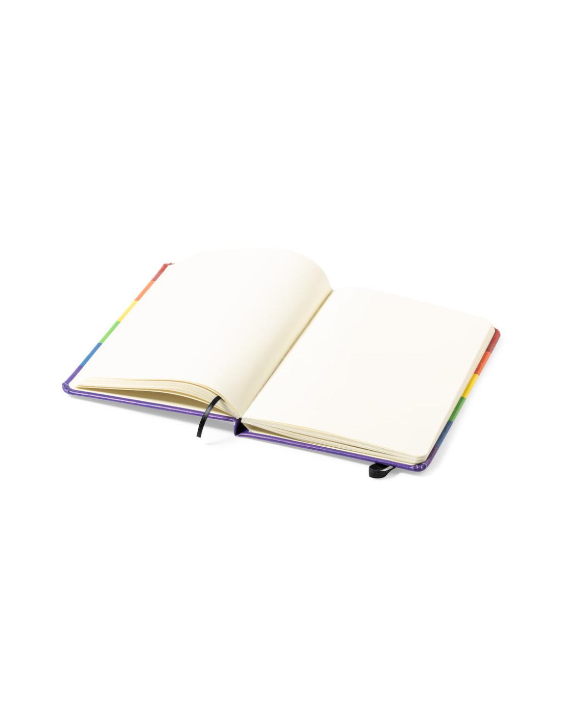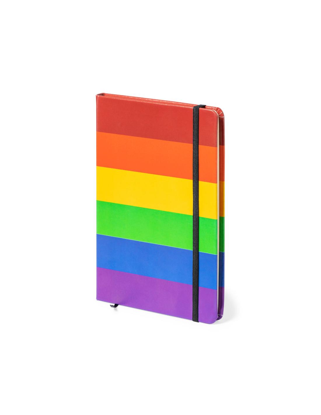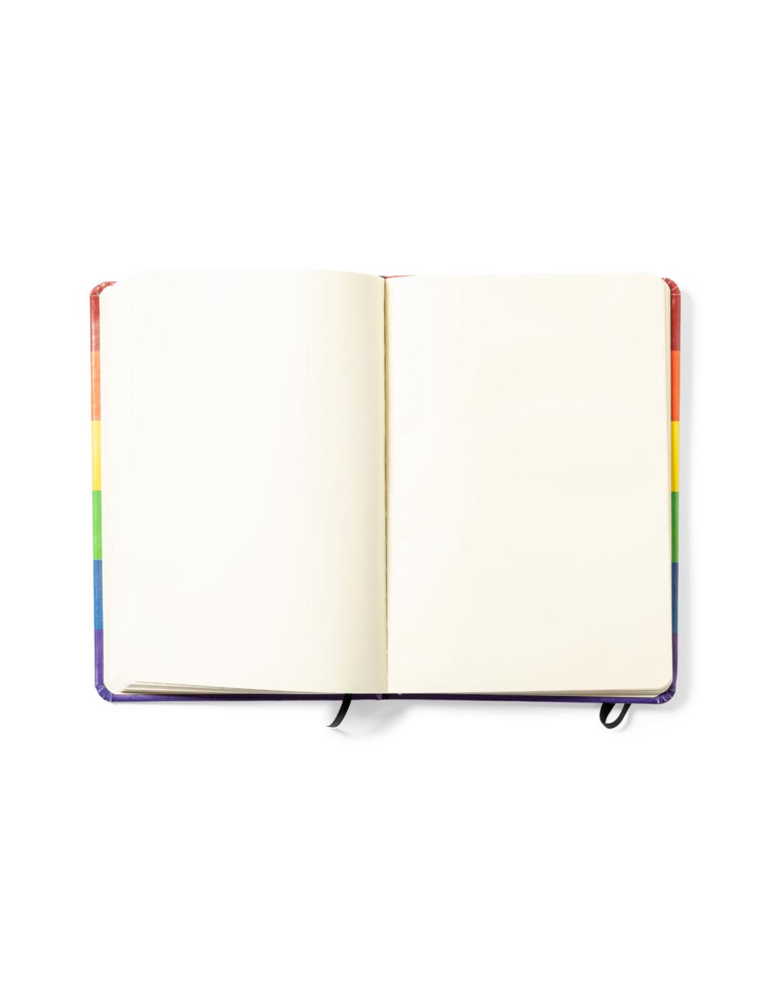 Bloc de notas Rainbow multicolor, con tapas duras en polipiel de suave tacto y elástico de sujeción. Todo un orgullo de bloc de notas, con 100 hojas interiores lisas y marcapáginas de tela.