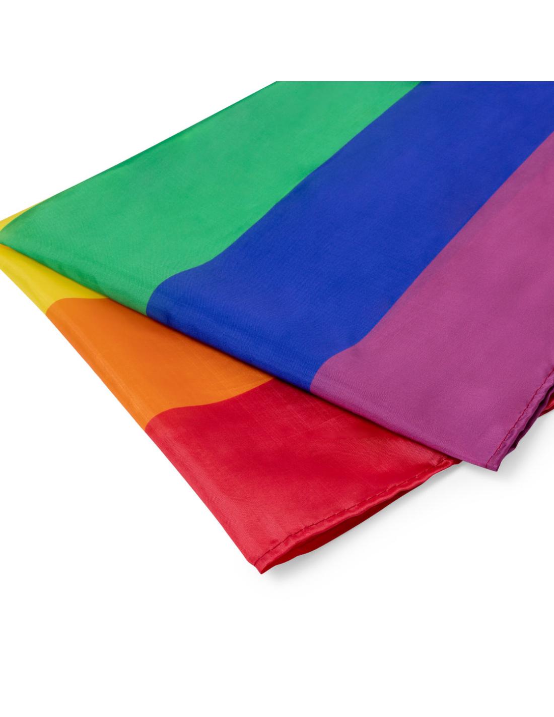 Bandera Rainbow con tela multicolor en resistente poliéster y cintas de sujeción. Todo un orgullo de bandera.