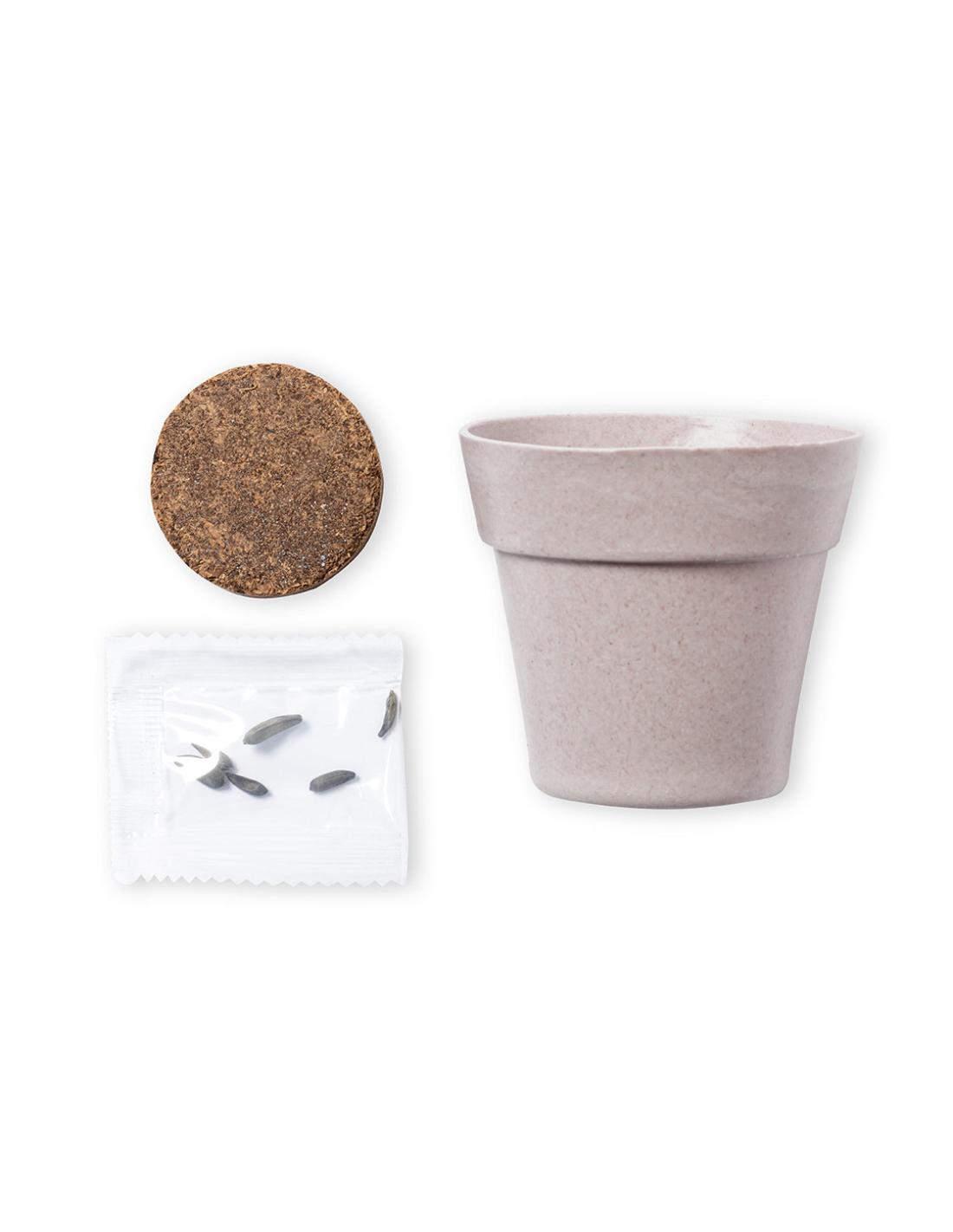 Maceta de línea nature con semillas de girasol. Macetero biodegradable, con 5-8 semillas y pastilla con sustrato de crecimiento. Presentación en caja individual kraft.