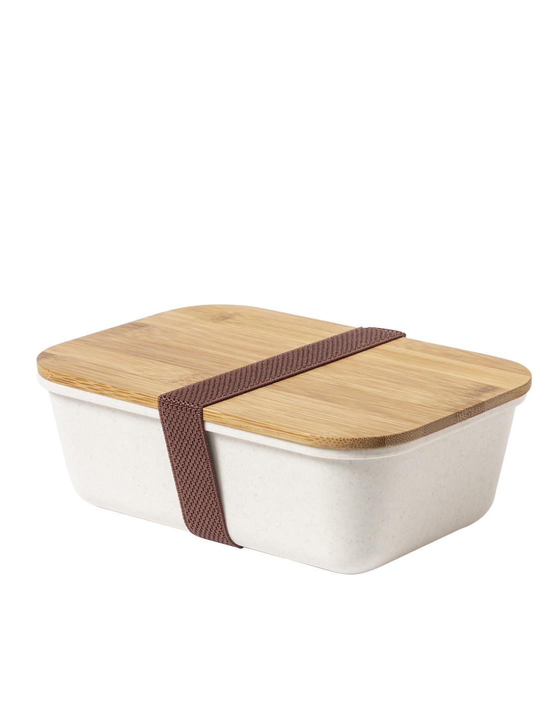 Fiambrera de 1l en resistente material PP veteado libre de BPA, con tapa de bambú. Cinta elástica de seguridad en tapa y certificación Food Grade, garantizando la seguridad cuando los alimentos entran en contacto con el material usado para fabricar el producto.
