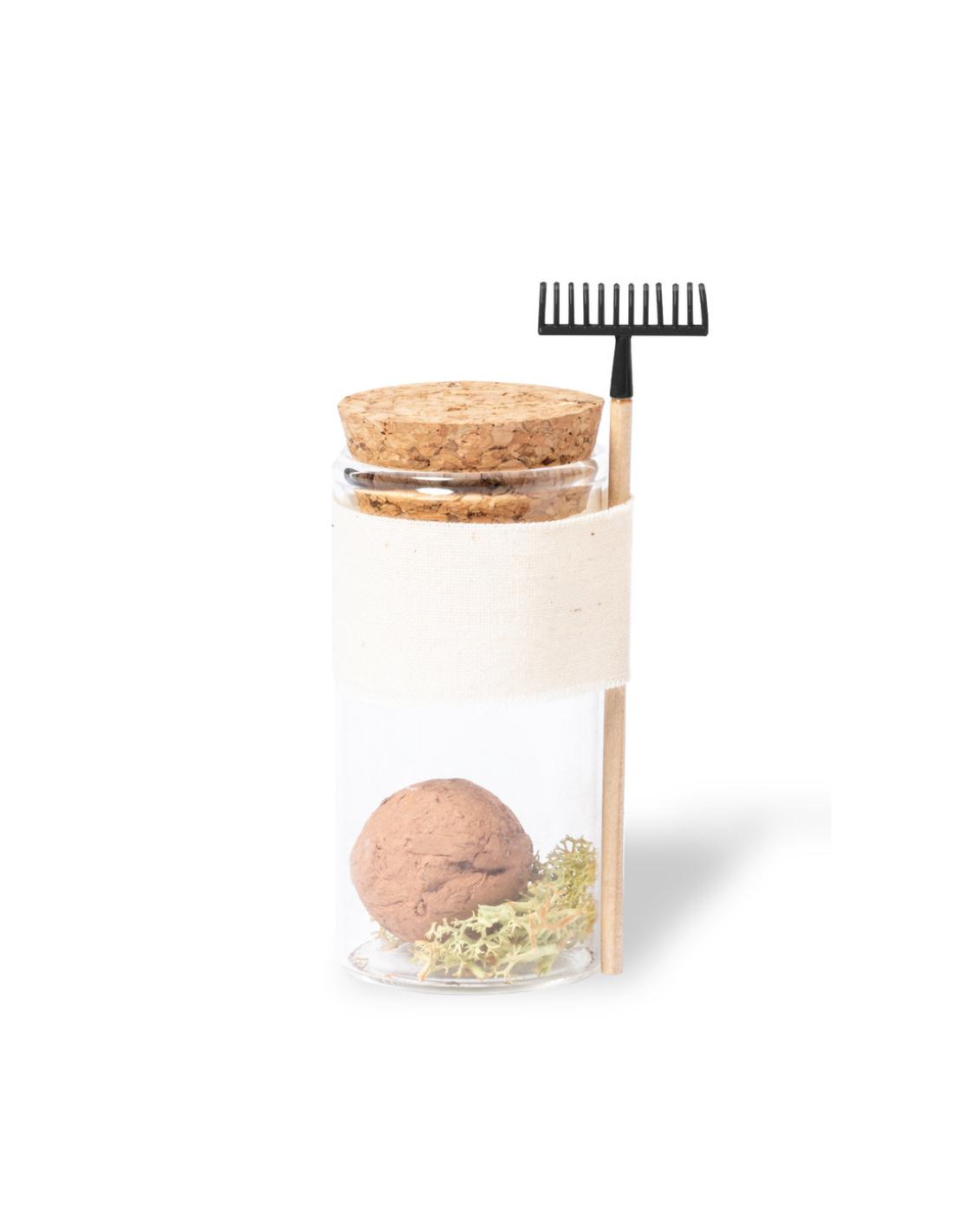 Bombón de semillas de línea nature. De flores silvestres y presentado en bote de cristal con tapón de corcho natural. Disponible en modelos rastrillo y pala.