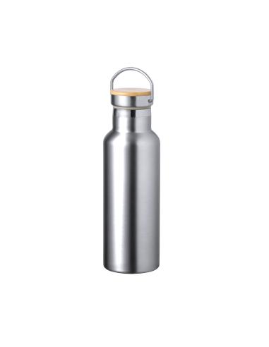 Bidón térmico de 500 ml de capacidad, fabricado en acero inox de doble pared. Incluye original tapón a rosca en acero inox, con detalle de bambú y asa integrada. Disponible en variada gama de colores y presentado en caja individual de diseño kraft.