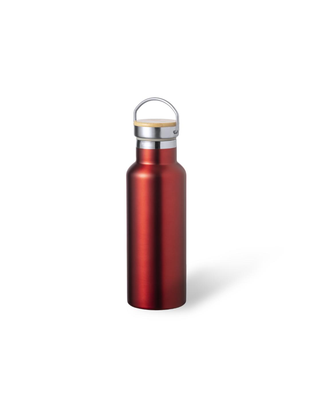 Bidón térmico de 500 ml de capacidad, fabricado en acero inox de doble pared. Incluye original tapón a rosca en acero inox, con detalle de bambú y asa integrada. Disponible en variada gama de colores y presentado en caja individual de diseño kraft.