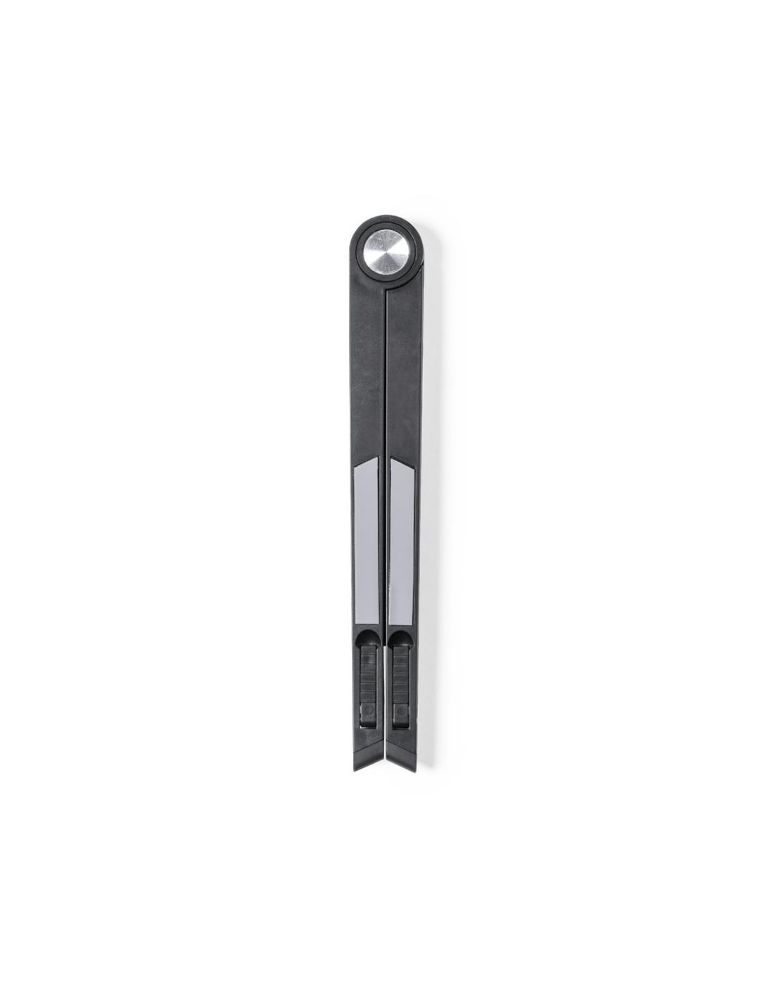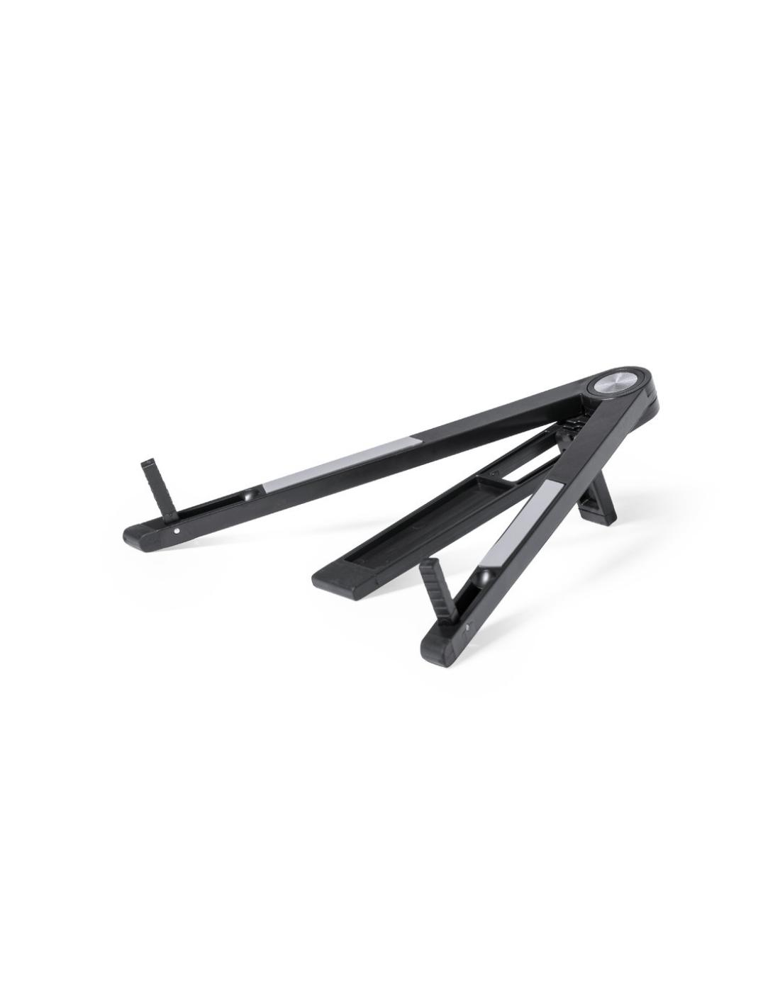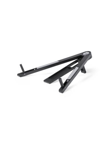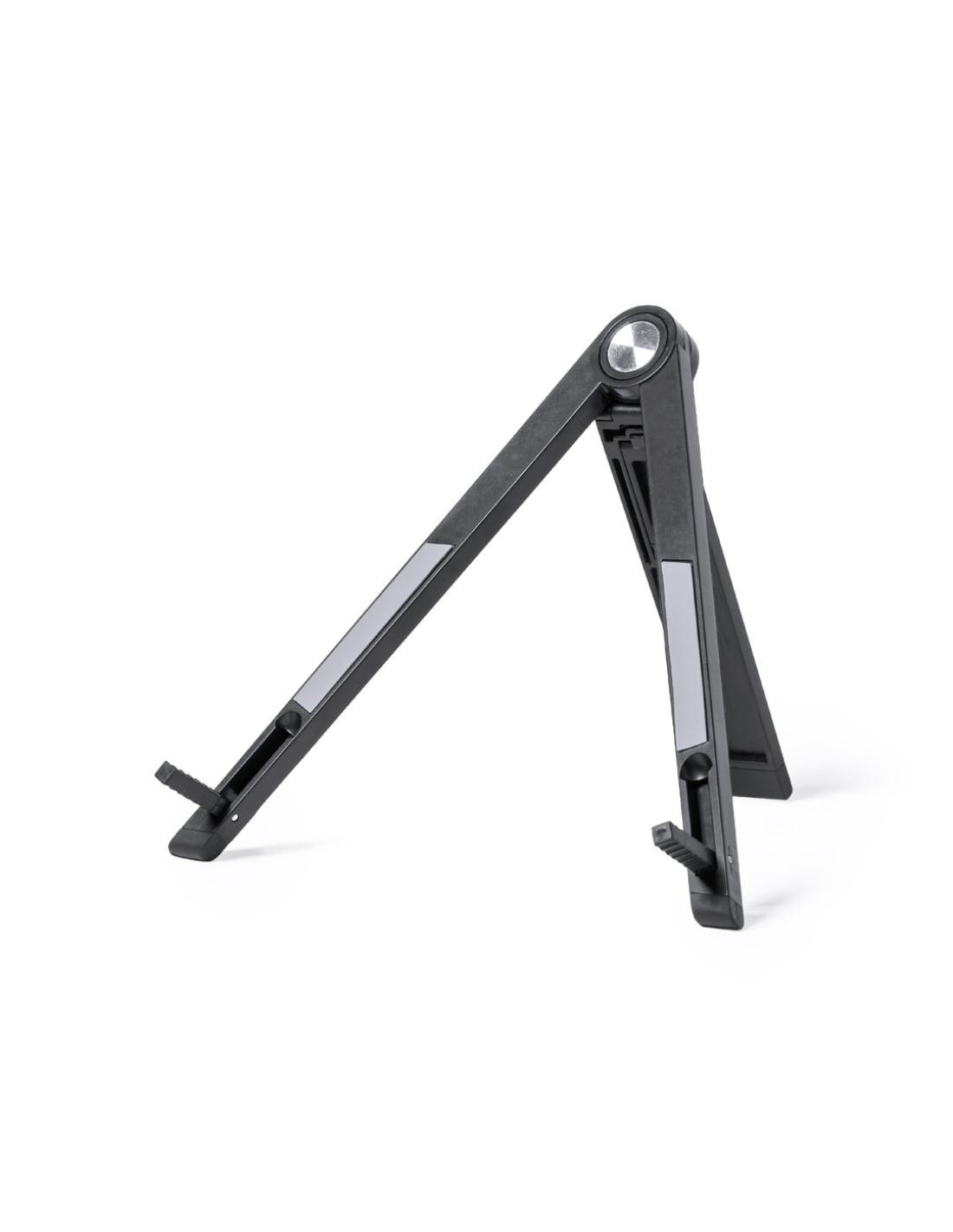 Original soporte plegable para dispositivos móviles y ordenador portátil de hasta 13", fabricado en resistente material ABS. Con dos posiciones de visionado y plegado de pequeño tamaño para un fácil transporte.