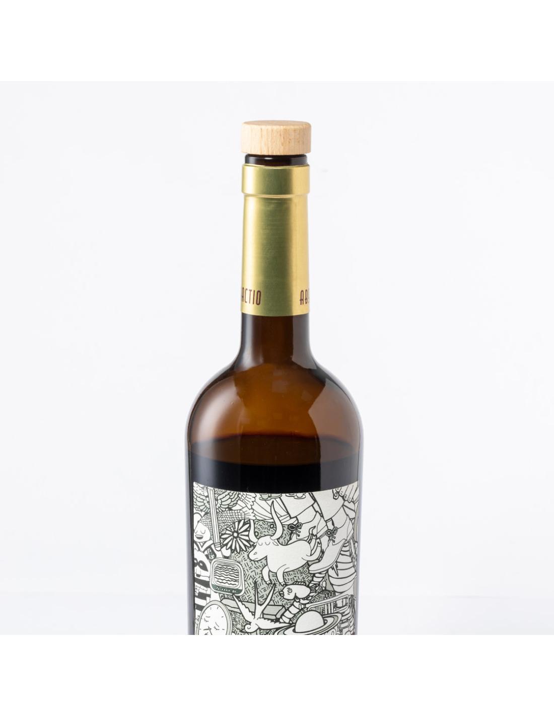 Tapón reutilizable para botella, con parte superior en madera natural y parte inferior hermética.