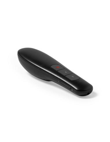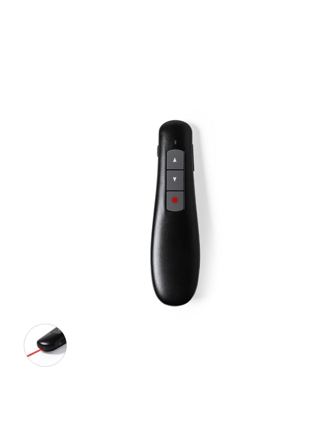 Puntero láser inalámbrico para presentaciones. De diseño ergonómico, incluye accesorio plug play para conectarlo al puerto USB del ordenador, sin necesidad de instalar software adicional para su correcto funcionamiento. Compatible con multitud de sistemas operativos (Windows, OS X, Linux y Android). Con botones avance/ pausa/ retroceso/volumen y alimentación a pilas: 2xAAA incluidas. Presentado en elegante y resistente estuche de cartón negro, con funda e interior troquelado en espuma. Manual de instrucciones en español e inglés.