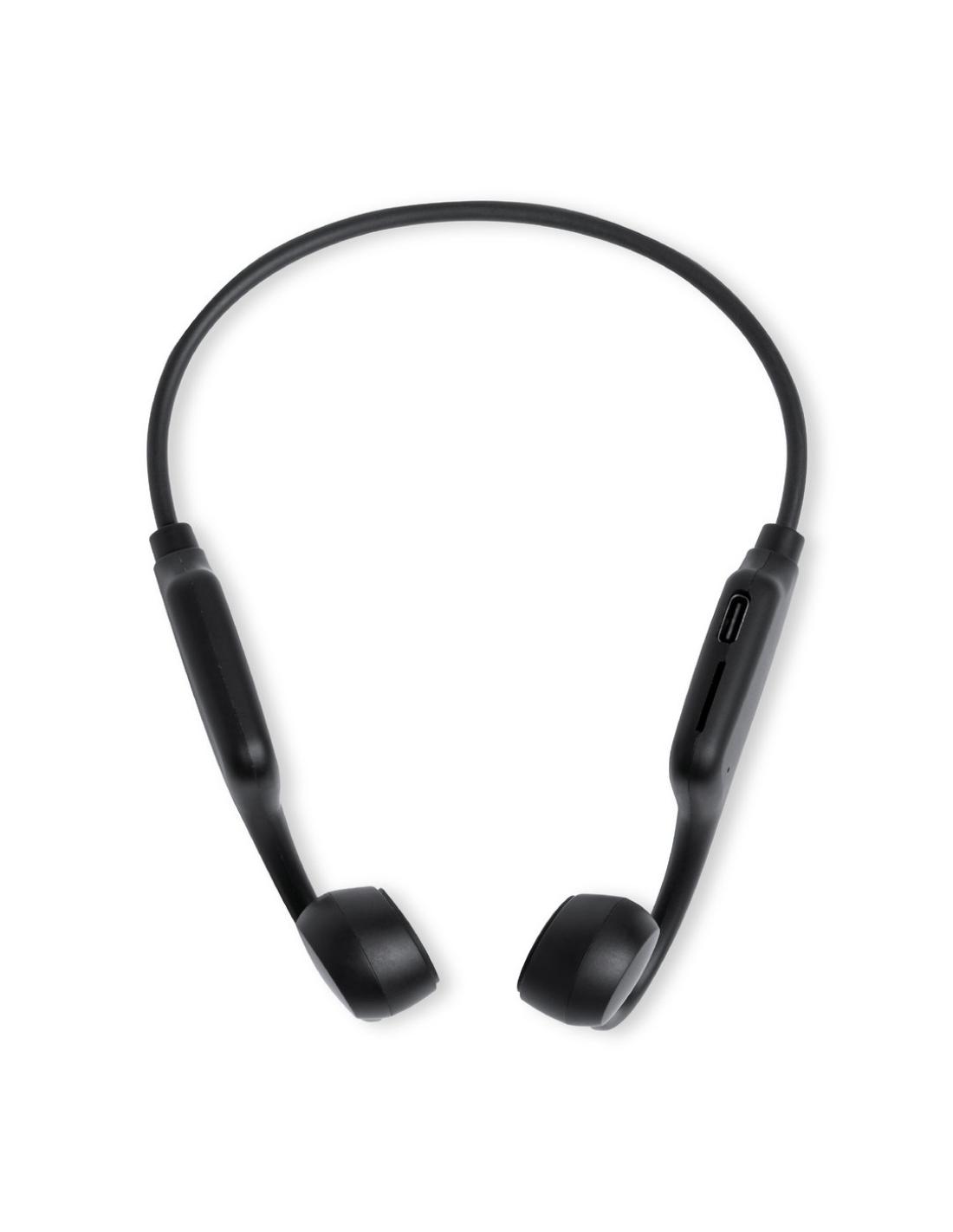 Auriculares supraurales Bluetooth. Con Tecnología de Conducción Ósea (Bone Conduction Technology), que generan una vibración captada por los huesos del oído interno. Mediante esta tecnología, el pabellón auditivo y los tímpanos del usuario quedan libres, percibiéndose tanto el contenido que se está reproduciendo a través de los auriculares como el resto de sonidos ambiente de alrededor.Conexión Bluetooth 5.3, con función manos libres, ranura para tarjetas micro SD y batería de 250 mAh integrada. De diseño ergonómico, incluyen botones de control integrados, luz LED de estado de carga y cable de carga Tipo C. Presentados en caja individual de diseño kraft, con manual de instrucciones en español e inglés.