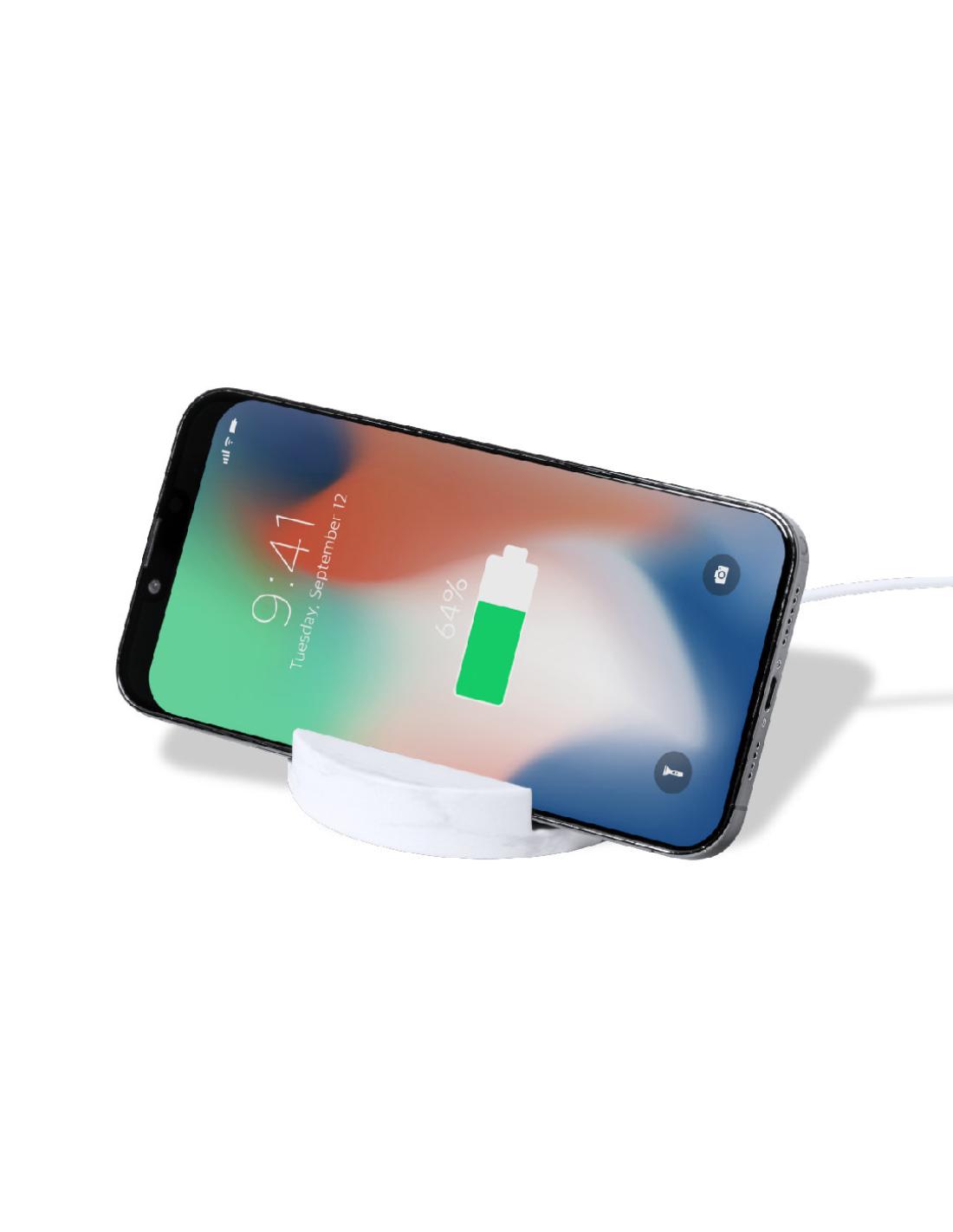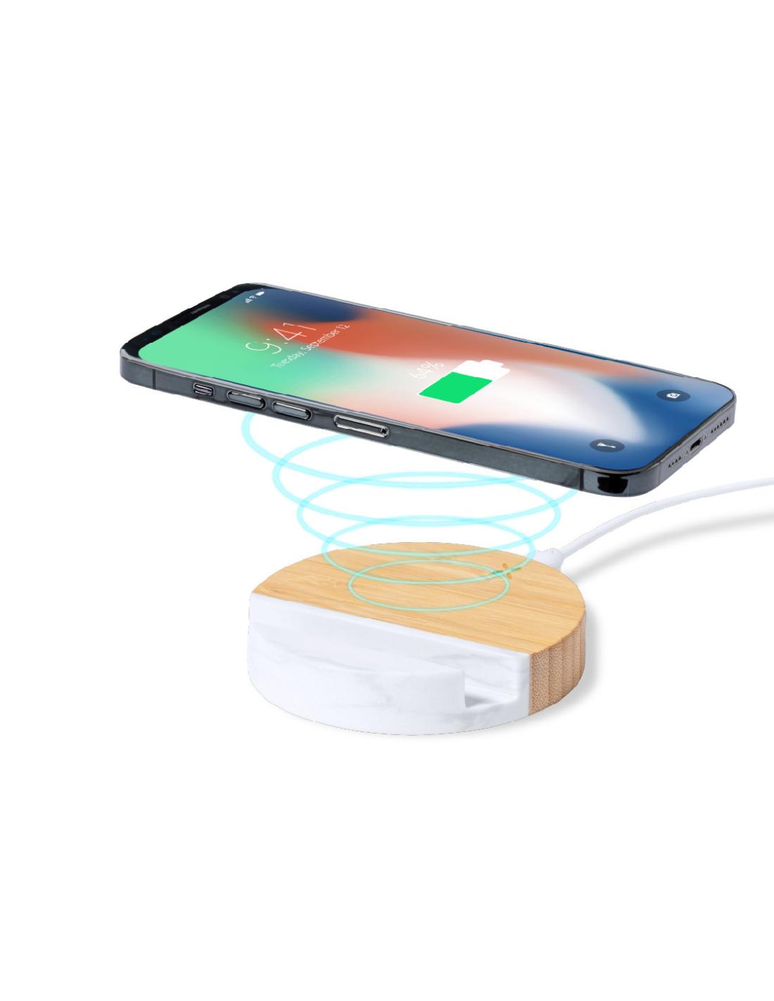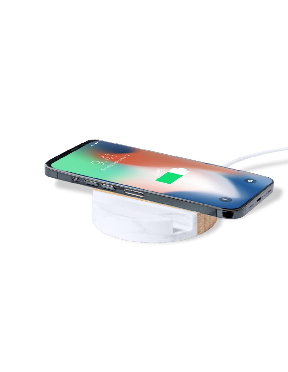 Cargador inalámbrico 15W con soporte para smartphone integrado. De diseño circular y fabricado en materiales naturales: base en bambú, con soporte en extracto de mármol. Compatible con dispositivos equipados con tecnología de carga inalámbrica Qi. Incluye cable cargador Tipo C y manual de instrucciones en español e inglés. Presentado en caja individual de diseño kraft. Fabricado conforme a los estándares RoHS y en cumplimiento con los siguientes requisitos de seguridad: Sistema de protección contra sobrecalentamiento. Sistema de protección contra sobrecarga. Sistema de bloqueo para evitar cortocircuitos.