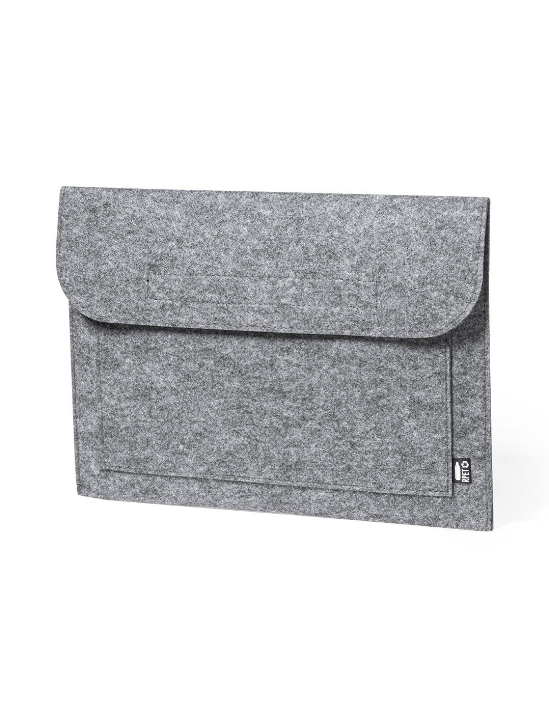 Funda para ordenador portátil de línea nature y en resistente fieltro RPET reciclado, fruto de la combinación del proceso de reciclaje de materiales plásticos junto con la técnica milenaria de fabricación del fieltro, dando como resultado un material de eco-tendencia que, además de ser de origen reciclado, también se convierte en reciclable. Solapa con cierres de velcro y bolsillo frontal, con distintivo RPET en etiqueta exterior.