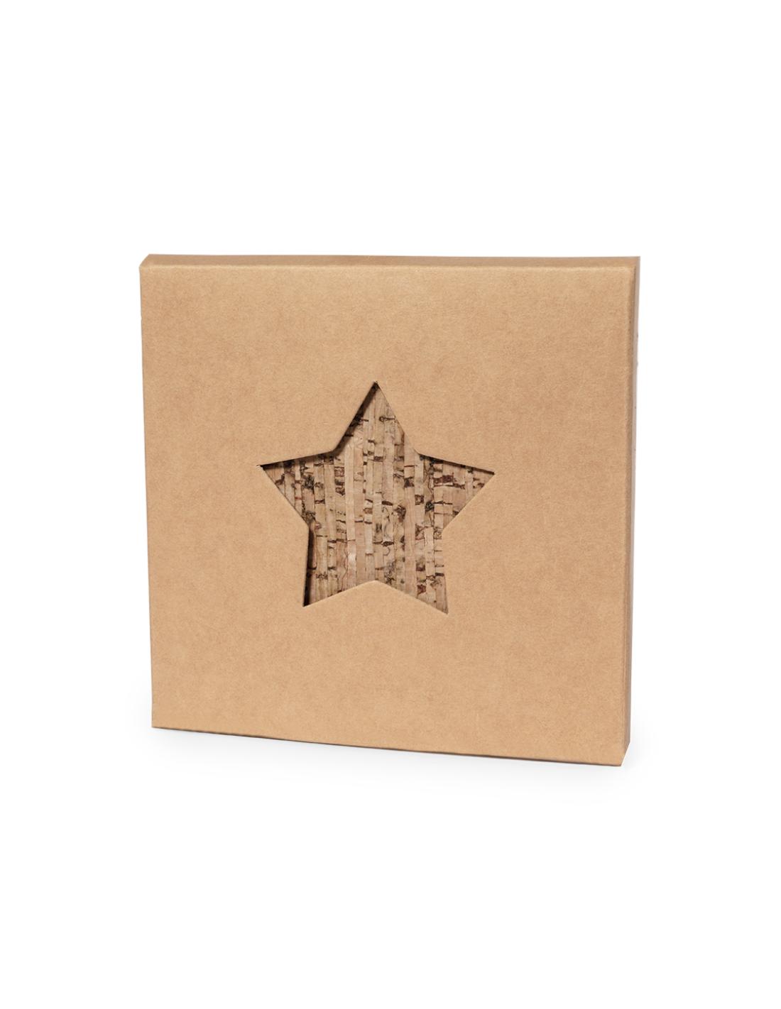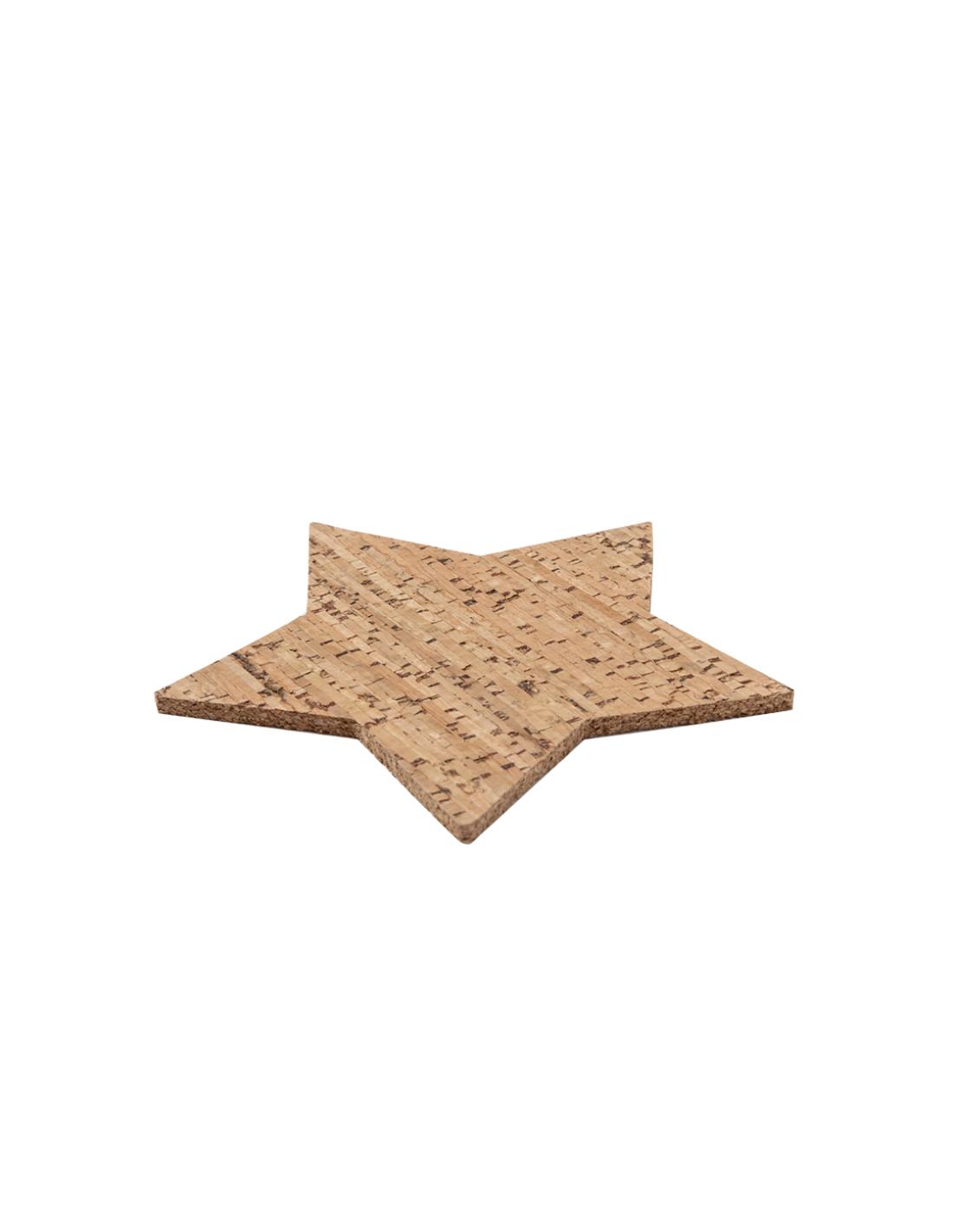 Set de 4 posavasos con forma de estrella fabricados en corcho natural. Set presentado en caja de diseño en cartón kraft con diseño de estrella troquelado.Elaborado con elementos vegetales para así fomentar la utilización de materias primas naturales y reducir las emisiones contaminantes.